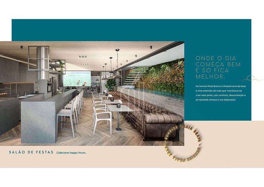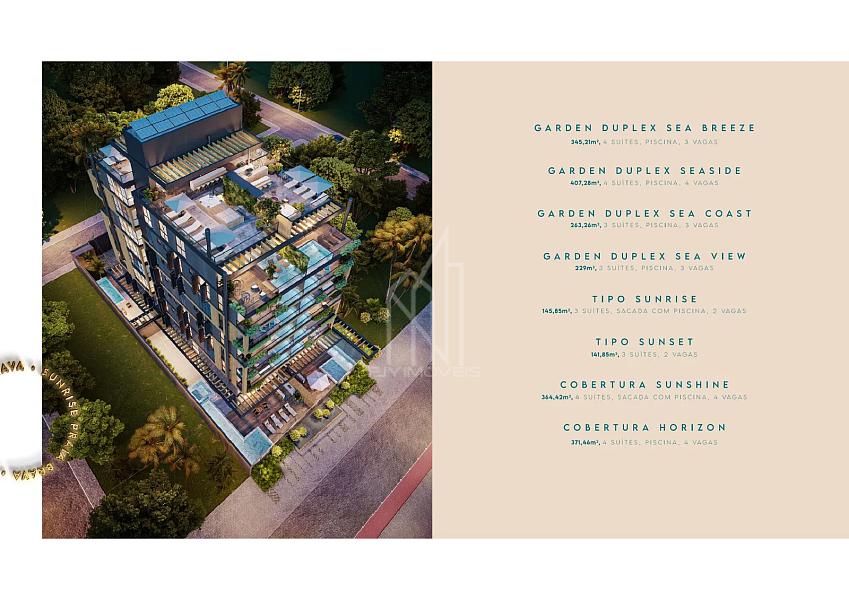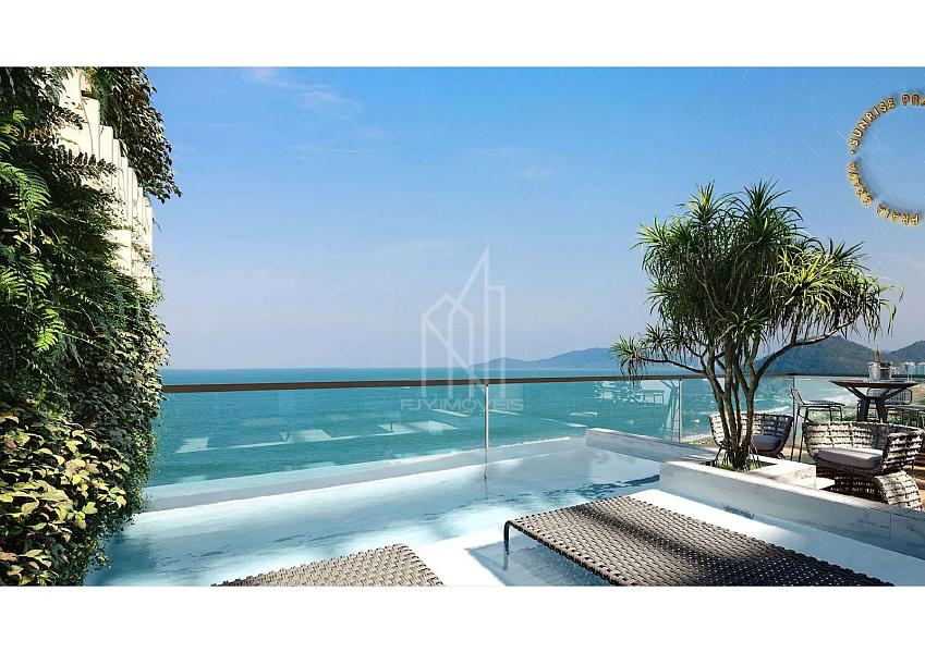 [FRENTE MAR] Apartamento Garde Duplex no Edifício Sunrise Praia brava, 345m² privativos, 04 suítes sendo uma master, pé direito duplo, vista panorâmica para o mar, sala de estar e jantar, cozinha americana, espaço gourmet com churrasqueira a carvão, mezanino e 03 vagas de garagem.