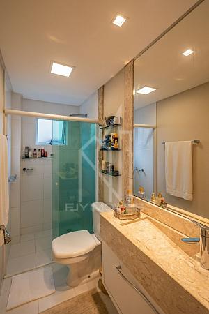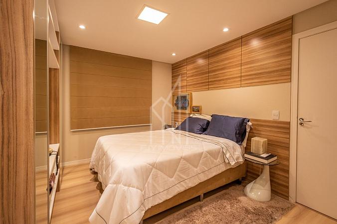 3 quartos sendo 1 suíte, living com 2 ambientes, portas em laka, porcelanato na área social, piso laminado de madeira nos dormitórios, sacada grill, lavabo, piscina privativa  e 2  vagas de garagem privativa.