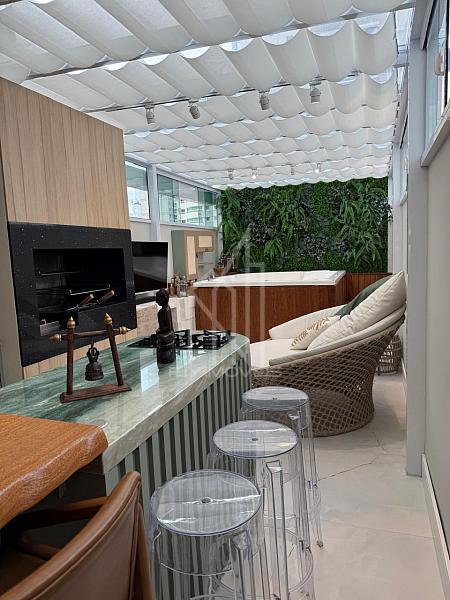 [GARDEN] Apartamento diferenciado no Edifício Porto di Napoli, 145m² privativos, 03 suítes, sala de estar e jantar, terraço aberto com churrasqueira a carvão e hidromassagem, finamente mobiliado e decorado, cozinha, área de serviço e 02 vagas de garagem privativas.