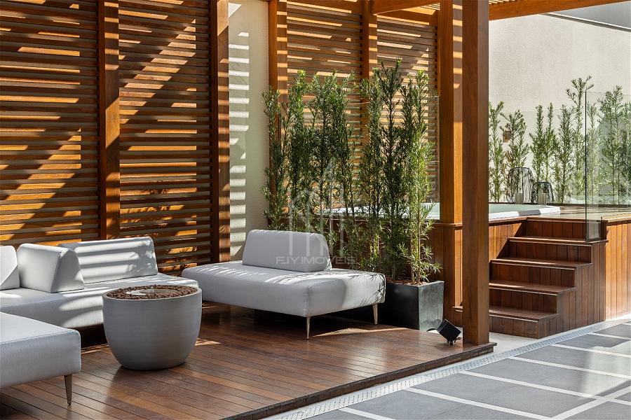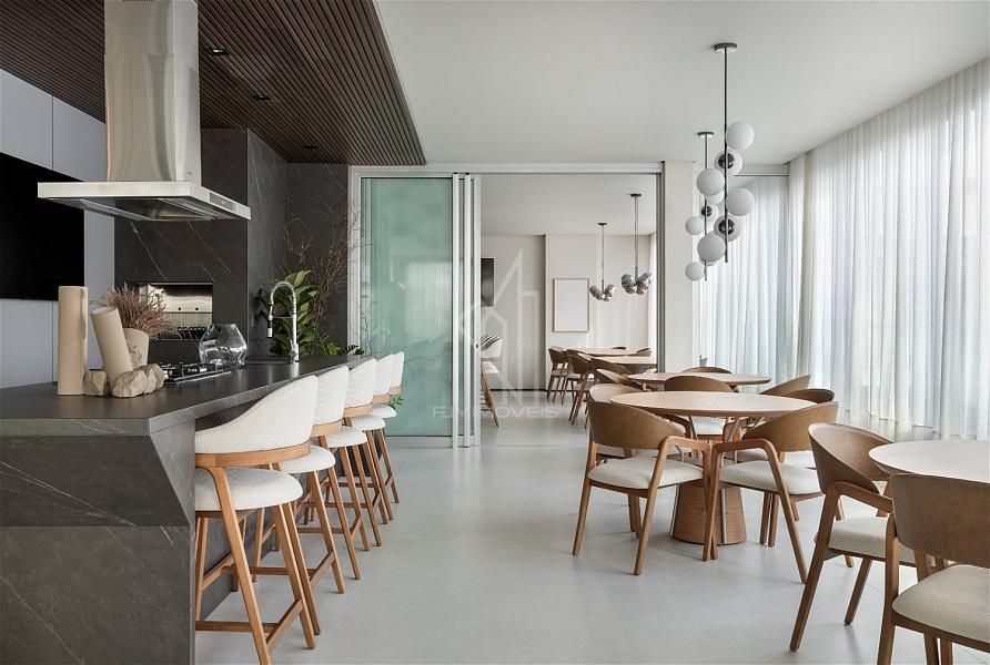 O apartamento possui Acabamento em gesso, Aquecimento a Gás, Área de Serviço, Churrasqueira a carvão, Circuito Tv, Cozinha, Espera para split, Fechadura com senha na porta de entrada, Gás Individual Hidrômetro Individual, Infraestrutura para água quente, Interfone, Lavabo, Living, Porcelanato, Sala de Estar, Sala de jantar, 4 suítes, 3 vagas individuais de garagens + 1 moto, Sistema de fachada Balcon Juliet Glass.