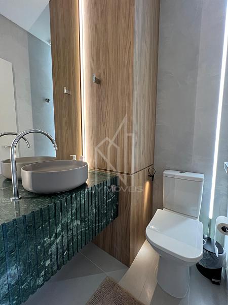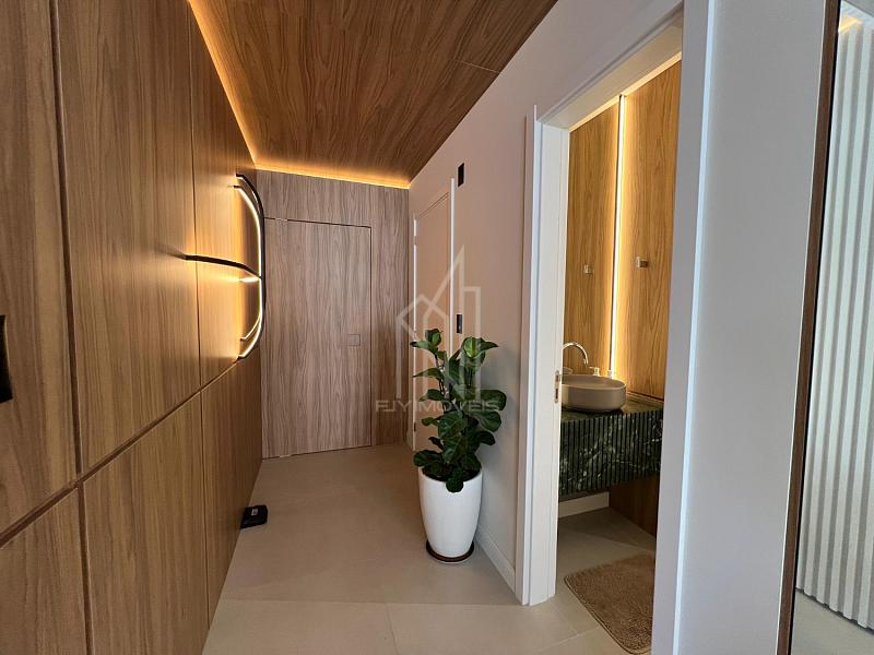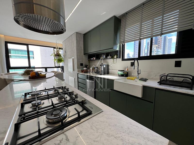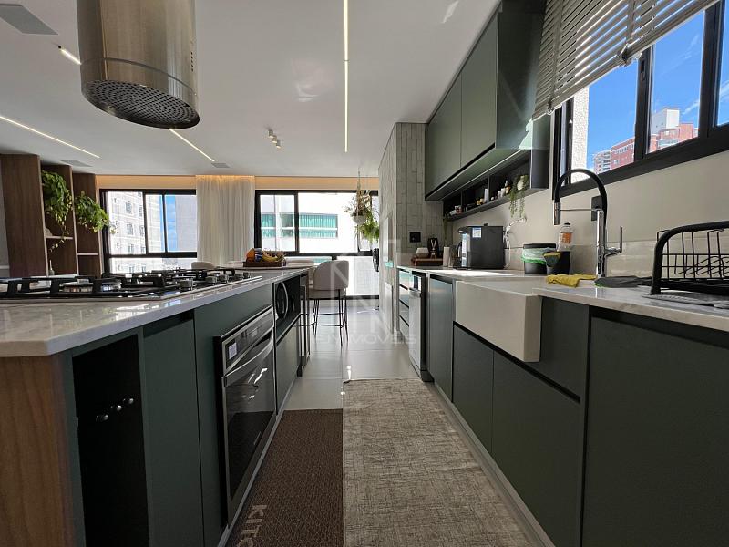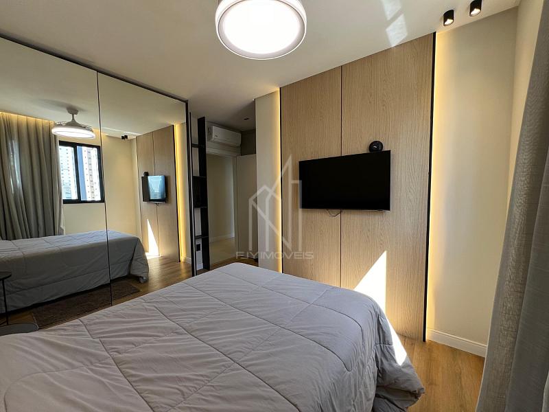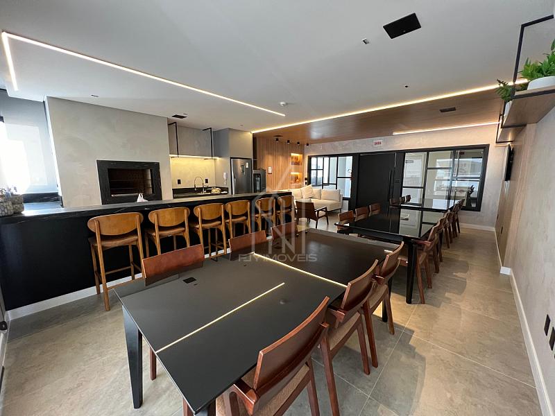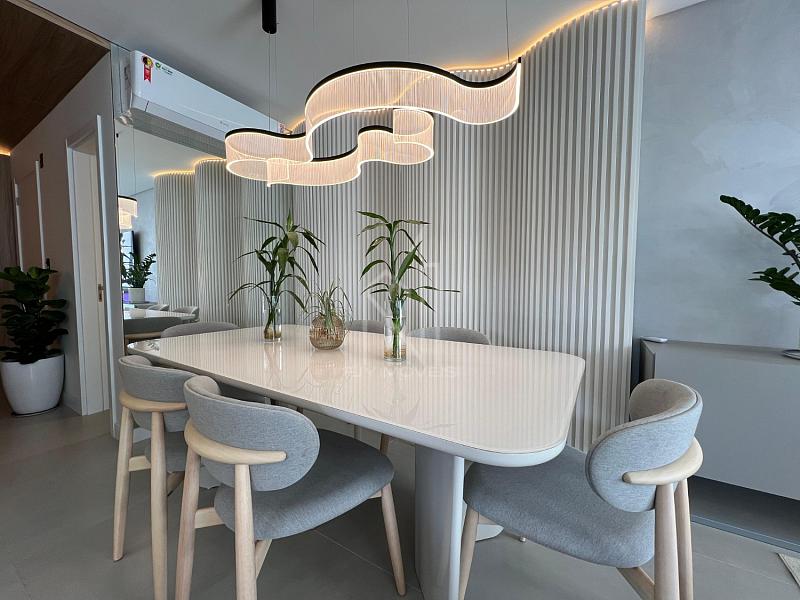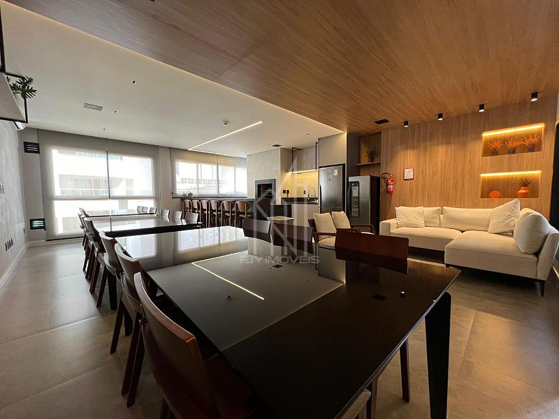 Apartamento possuí 03 suítes, 126m² privativos, 02 amplas vagas de garagem, livig integrado com churrasqueira a carvão, finamento mobiliado e decorado.