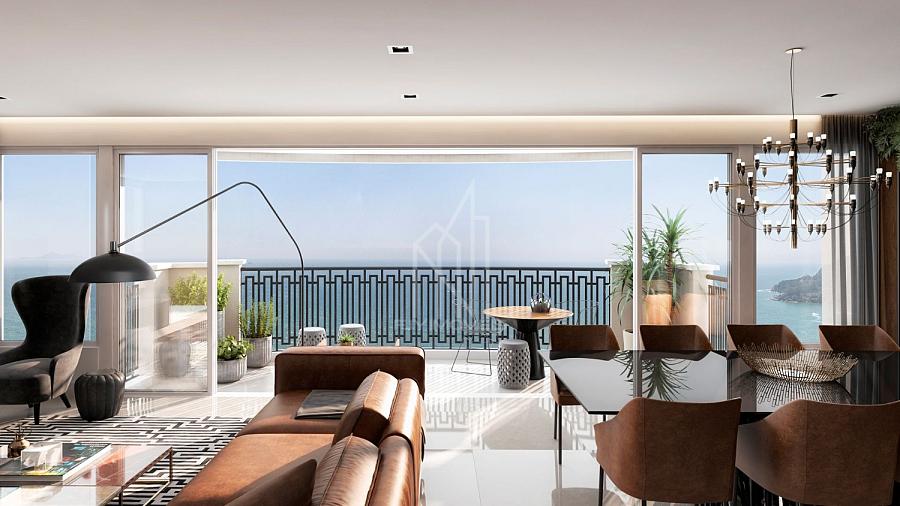 [ FRENTE MAR ] Apartamento no Edifício Aurora Exclusive Home luxuoso e com alto padrão da construtora Embraed,230m² privativos e exclusividade de um por andar, 04 suítes sendo 1 master com living, 2 banheiros, hidromassagem e 2 closets, sacada aberta de frente para o mar, cozinha gourmet com churrasqueira a carvão, lavabo, área de serviço com banheiro, sala de estar e jantar, vista panorâmica para o mar e 05 vagas de garagem.