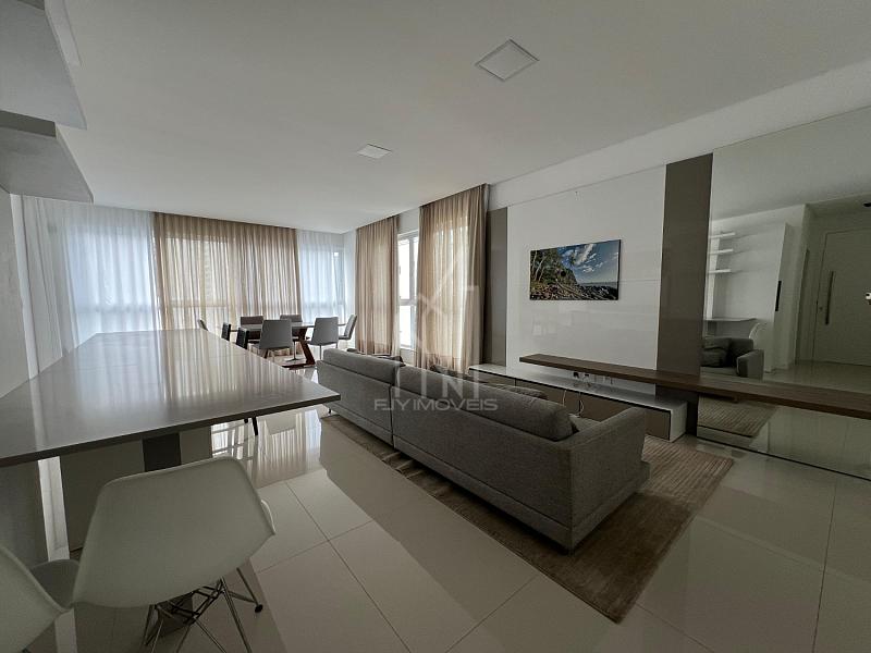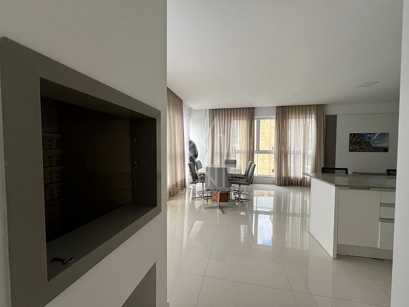 [Apartamento a venda no Barcelona Garden] Apartamento semimobiliado com 03 suítes, 134m², 03 vagas, living integrado com churrasqueira a carvão, área de serviço, lavabo.