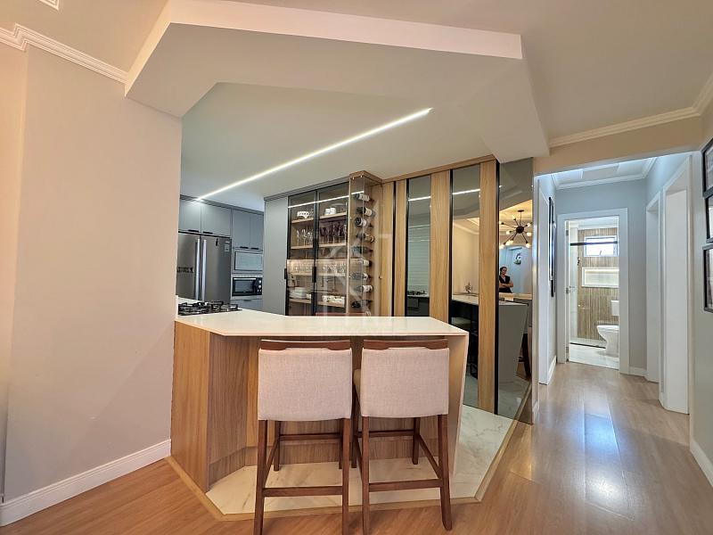 [DECORADO] Apartamento no Edifício Beatriz Cristina Regina, 89m² privativos, 03 dormitórios sendo uma suíte, sacada integrada com churrasqueira a carvão, cozinha americana, área de serviço, finamente mobiliado e decorado, banheiro social, face norte e 02 vagas de garagem que cabem 3 carros.