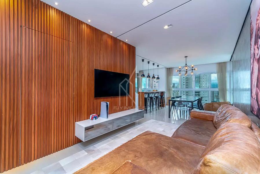 [ALTO PADRÃO] Apartamento decorado no Edifício Bosque Belcanto,135m² privativos, 03 suítes sendo uma master com closet, sala de estar e jantar, living em dois ambientes, cozinha, área de serviço, espaço gourmet com churrasqueira, vista mar de todos os comodos, finamente mobiliado e decorado e 03 vagas de garagem.