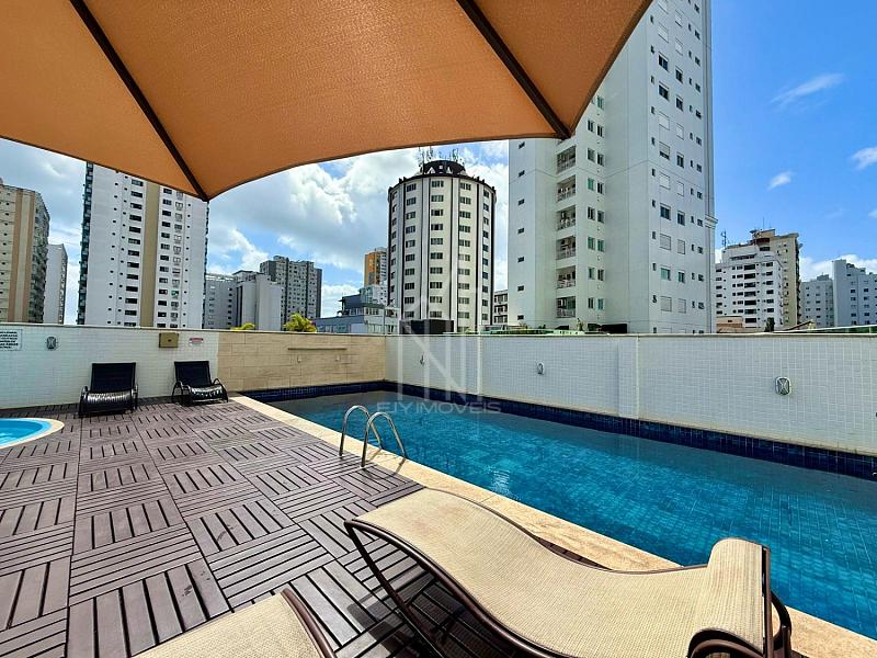 [PRONTO PARA MORAR] Apartamento mobiliado à venda no Edifício Brasil Central, no centro de Balneário Camboriú. Com 79,69 m² de área privativa e 117,19 m² de área total, o imóvel conta com 2 dormitórios (1 suíte), sacada com churrasqueira a carvão, sala de estar e jantar integradas, cozinha aberta com bancada, área de serviço, banheiro social e 1 vaga de garagem para camionete.