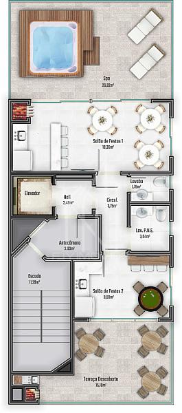 Empreendimento: espaço gourmet, estar social, jacuzzi, rooftop e salão de festas.