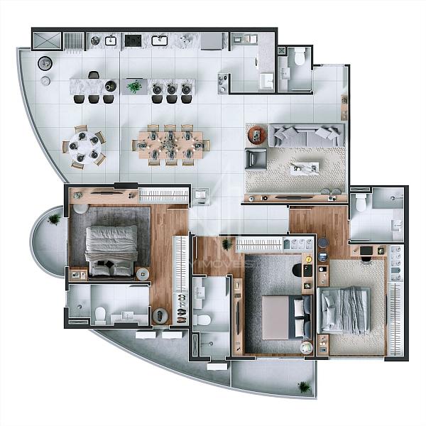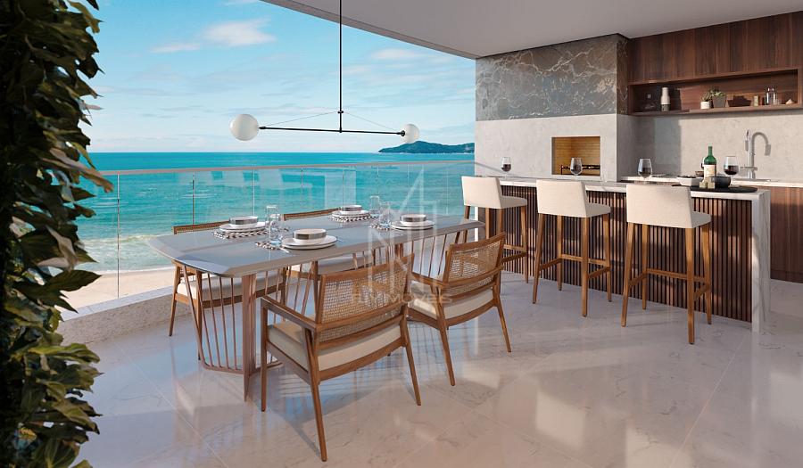Apartamento PRONTO PARA MORAR no Complexo Brava Beach, 150,00m² privativos, sem mobília, 03 suítes, lavabo, Sala de Estar e Jantar Integradas, vista mar, sacada Integrada com Churrasqueira a Carvão, cozinha Integrada área de Serviço e 03 vagas de garagem.