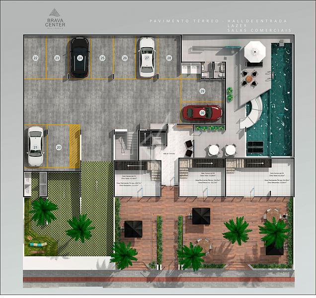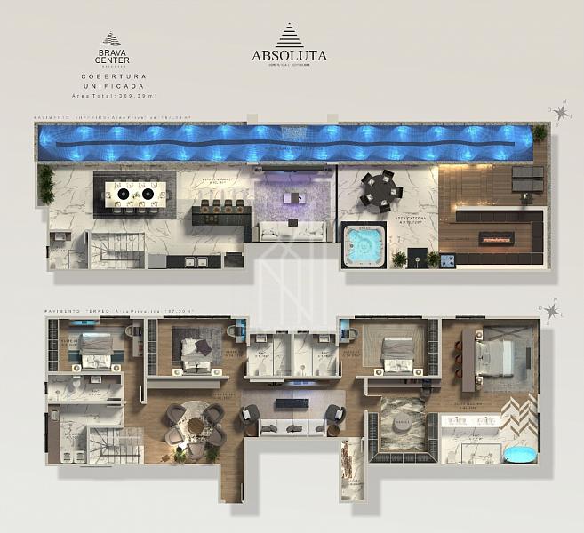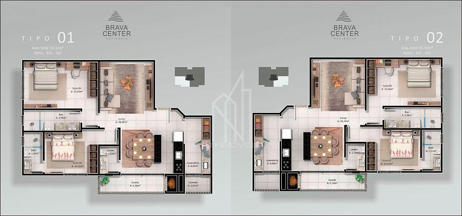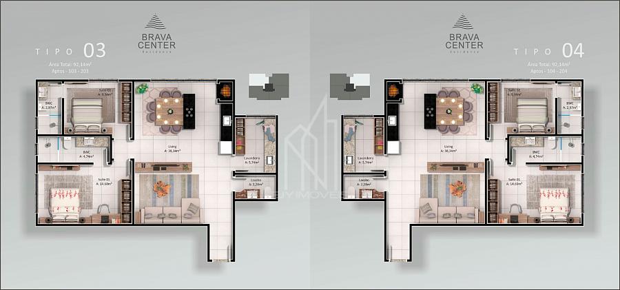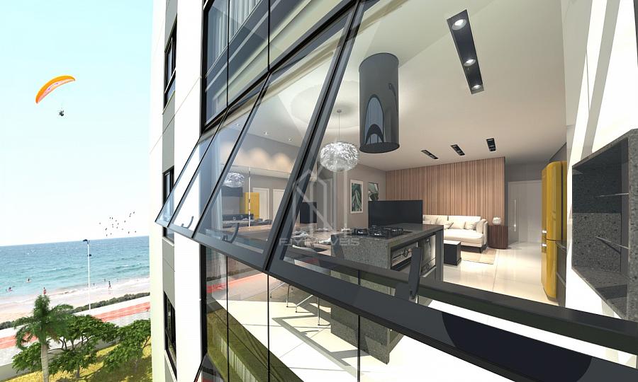 [QUADRA MAR] Apartamento no Edifício Brava Center na praia brava em Itajaí,93m² privativos, sala de estar e jantar, sacada, churrasqueira, cozinha, área de serviço, 02 vagas de garagem e há 60 metros do mar.