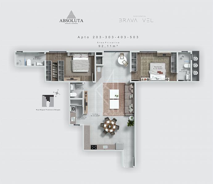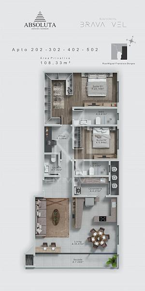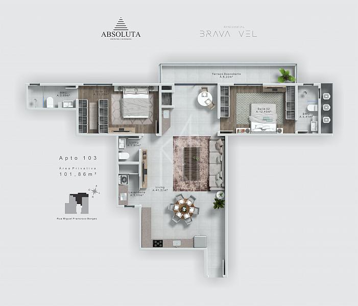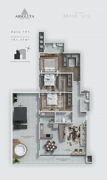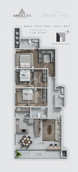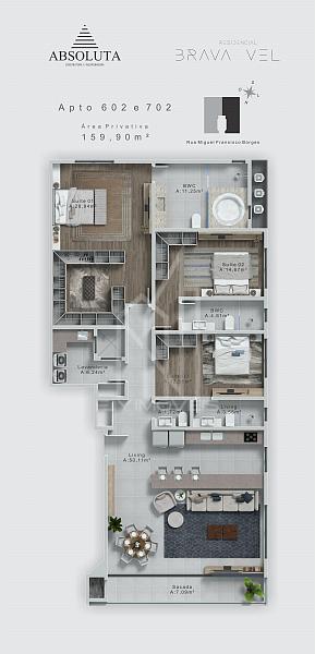 [EM CONSTRUÇÃO] Apartamento a venda no Edifício Brava Vel na praia brava, 161m² privativos, 03 suítes, sala de estar e jantar, sacada, churrasqueira, área de serviço e 02 vagas de garagem.