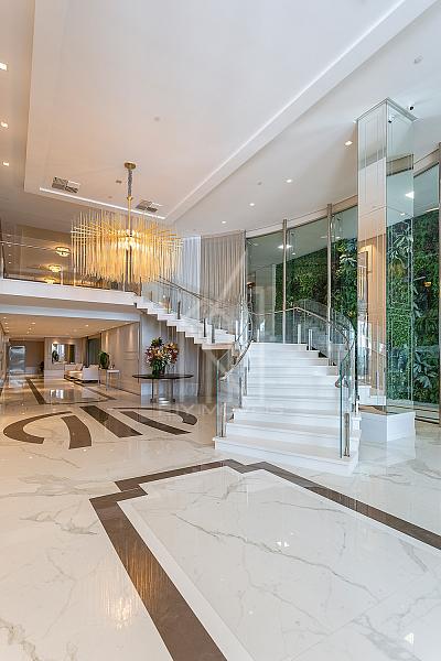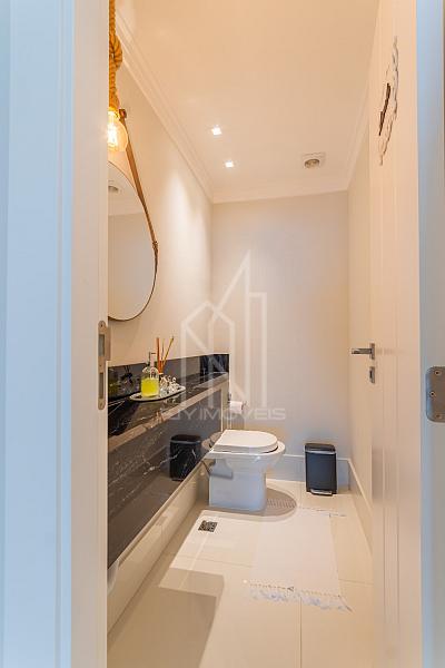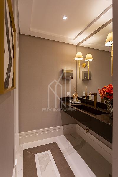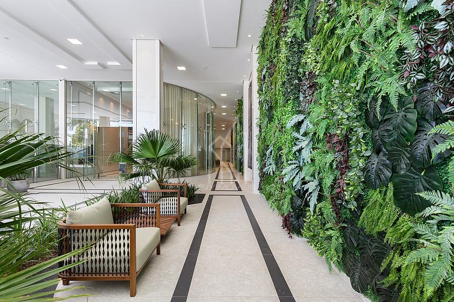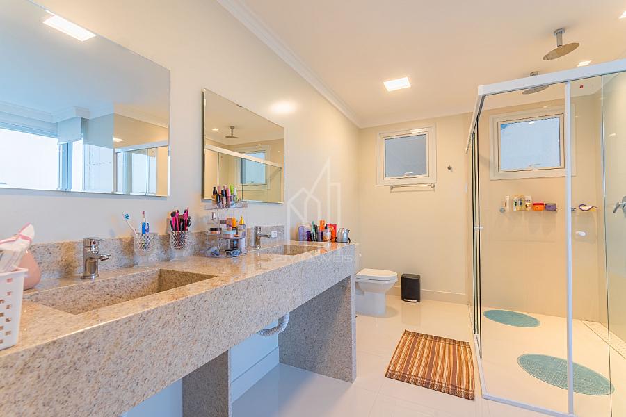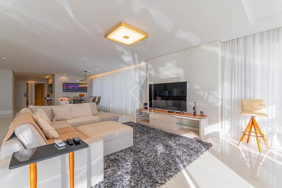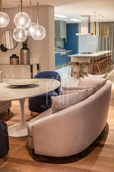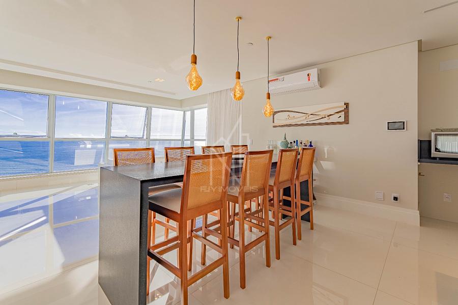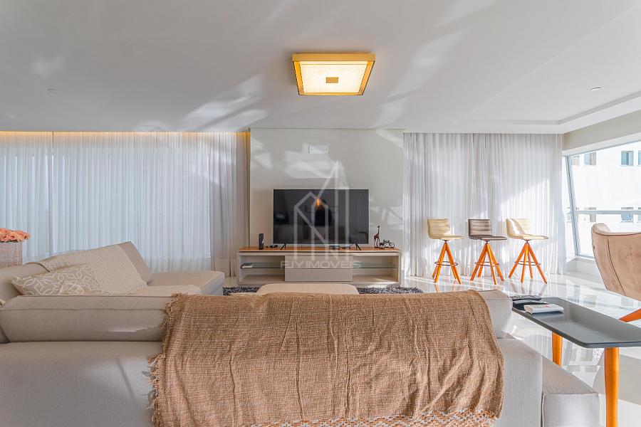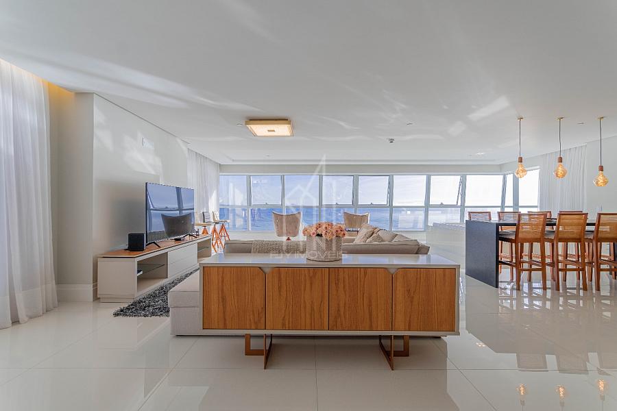 5 Suítes (suítes Master com sala de banho e closet), living para 3 ambientes com vista 112° e cozinha gourmet integrados com 115m², churrasqueira, lavabo, área de serviço com dormitórios, banheiro de serviço  mobiliado e decorado e 5 vagas de garagem (Cabem 6 carros)