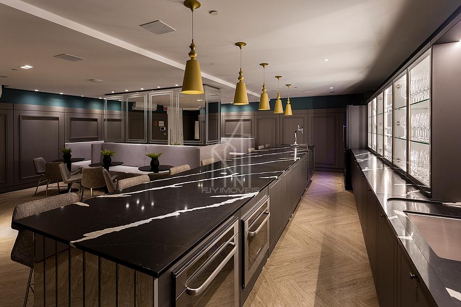 Empreendimento conta com: piscina externa adulta de 118m com raia e bar molhado, piscina infantil com ondas, salão de festas com cozinha gourmet e lounge, sala de jogos, baby room / playground, cinema / pub / wine bar, espaço saúde com academia, yoga, pilates, sala de massagem, piscina aquecida com raia de 16m, hidromassagem, saunas seca e úmida, quiosque gourmet, quadra poliesportiva, praça da lareira, jardins e espelhos d'água.