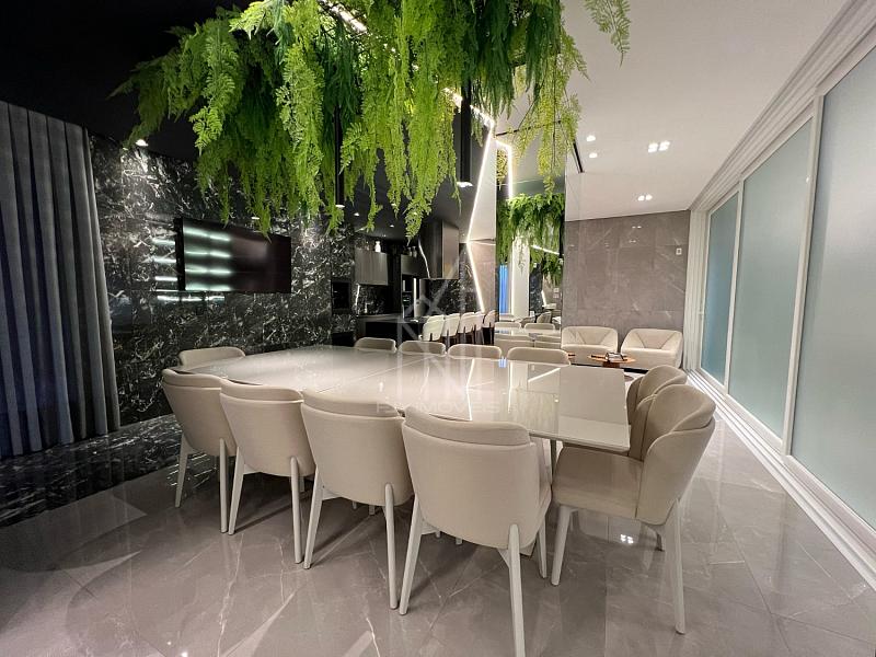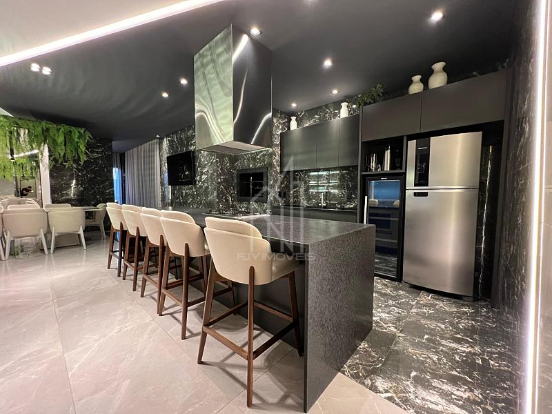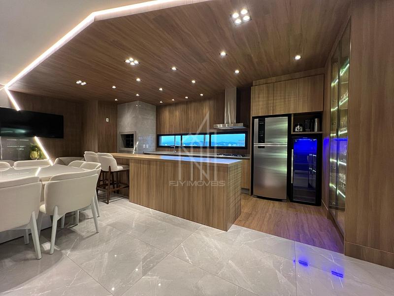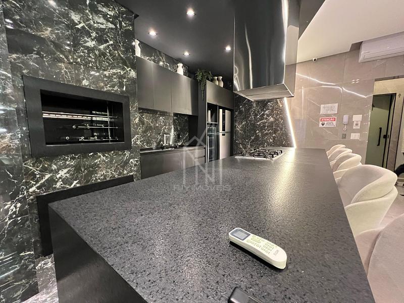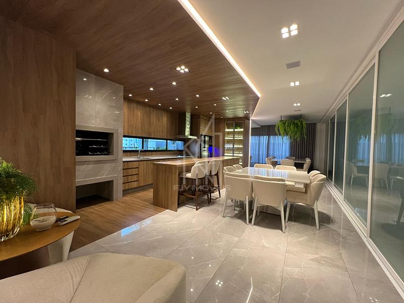 03 suítes com vista mar, 134m² privativos, living integrado com churrasqueira a carvão, vista ampla e livre face norte, lavado, área de serviço, área técnica, pé direito alto.