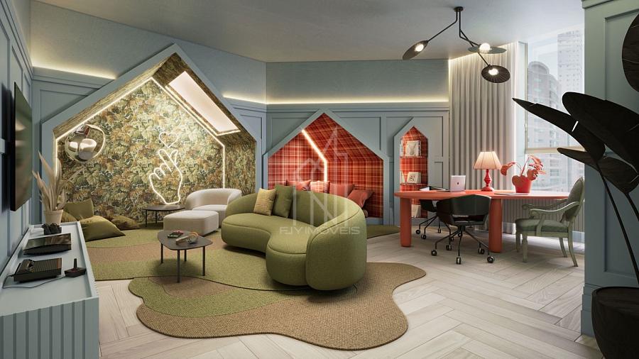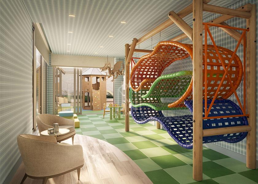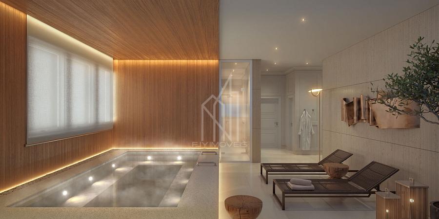 A área de lazer tem mais de 1.600 m² e inclui piscinas adulto e infantil, spa, sauna, academia, salão de festas, espaço gourmet, brinquedoteca, playground e outros ambientes completos para lazer e bem-estar.