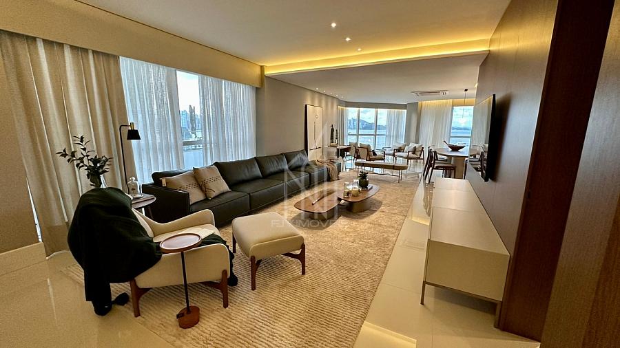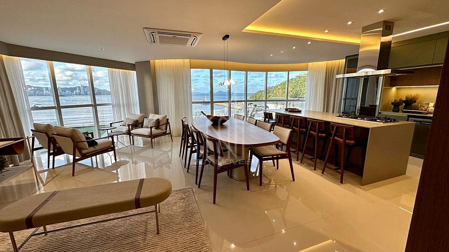 FRENTE MAR ALTO PADRÃO Com 238m² privativos, 04 suítes finamente mobiliado, equipado e decorado, pronto para morar com 4 vagas de garagem. Vista panorâmica para a orla da Praia de Balneário Camboriú.