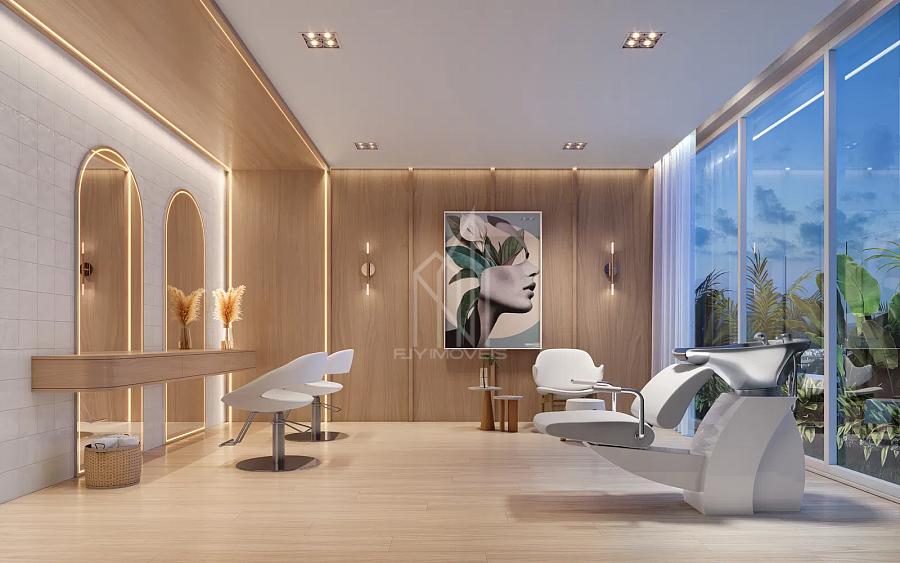 Empreendimento: Lounge, quiosque com churrasqueira a carvão, sala de massagem, sala de relaxamento, terraço, piscina, quadra poliesportiva, bar molhado, espaço beauty, estar externo, espaço gourmet, estar gramado, sauna úmida.