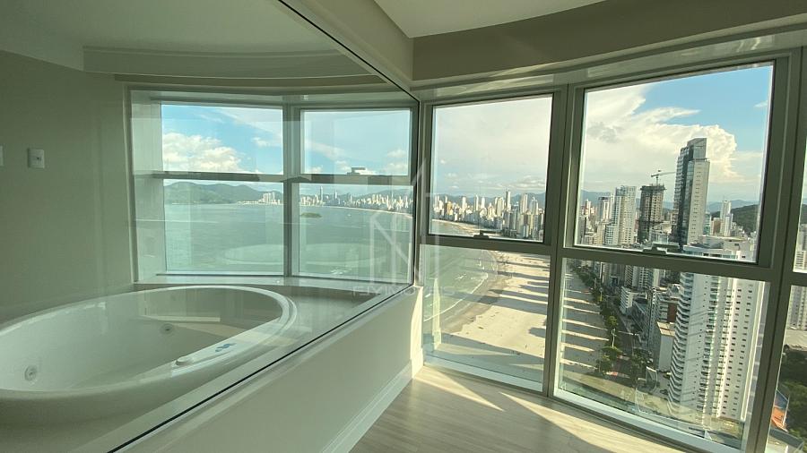 Apartamento na quadra do mar em Balneário Camboriú no Edifício Infinity Coast, 164,96m² privativos com 03 suítes, living integrado, cozinha, área de serviço, vista total do mar, sacada integrada com churrasqueira, 03 vagas de garagem.