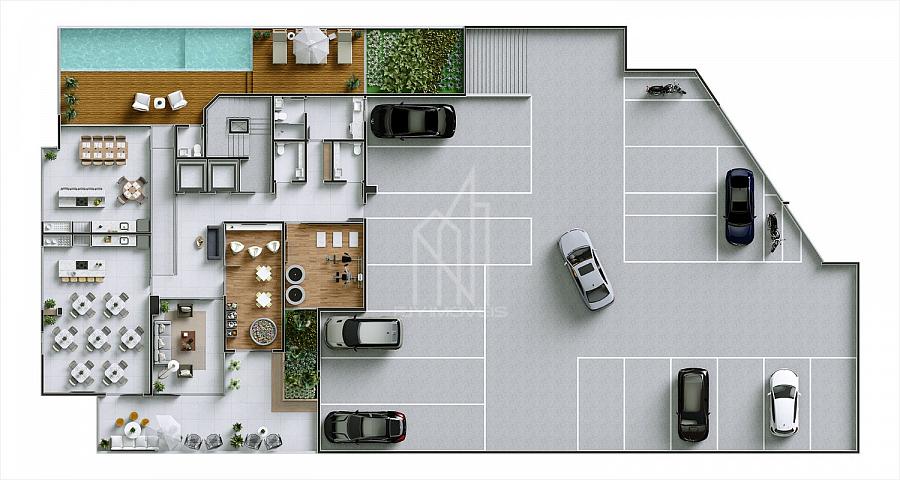 Empreendimento possui salão de festas, espaço gourmet, brinquedoteca, piscina, academia e terraço descoberto.