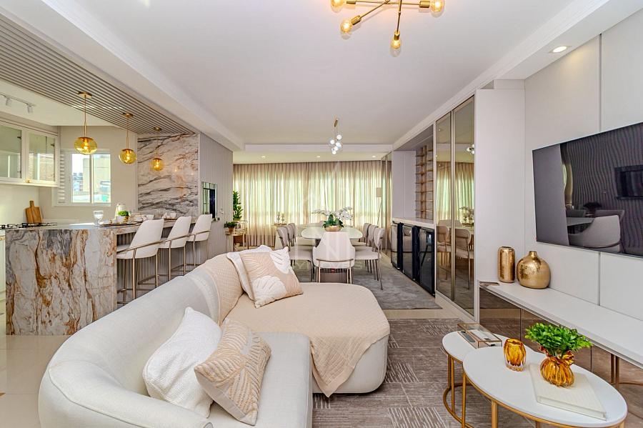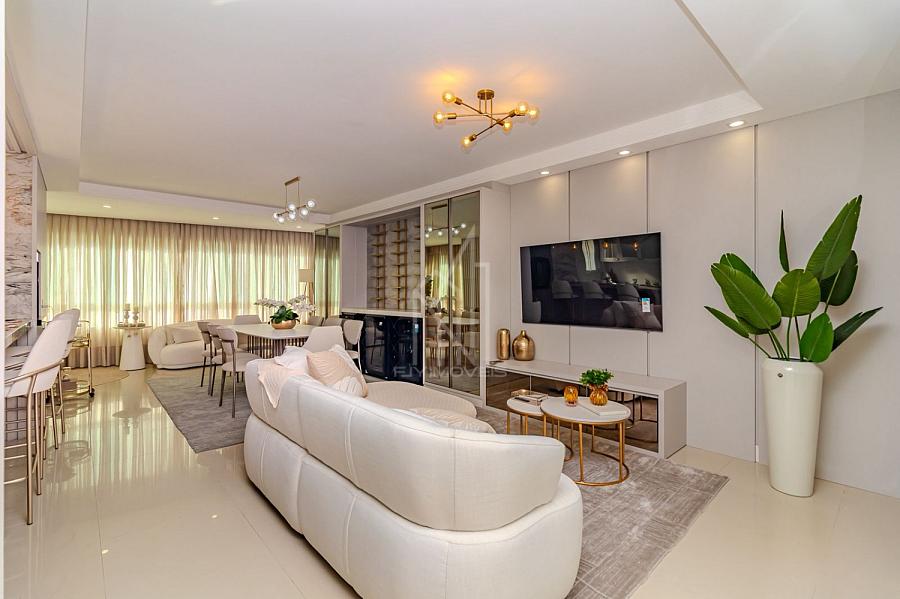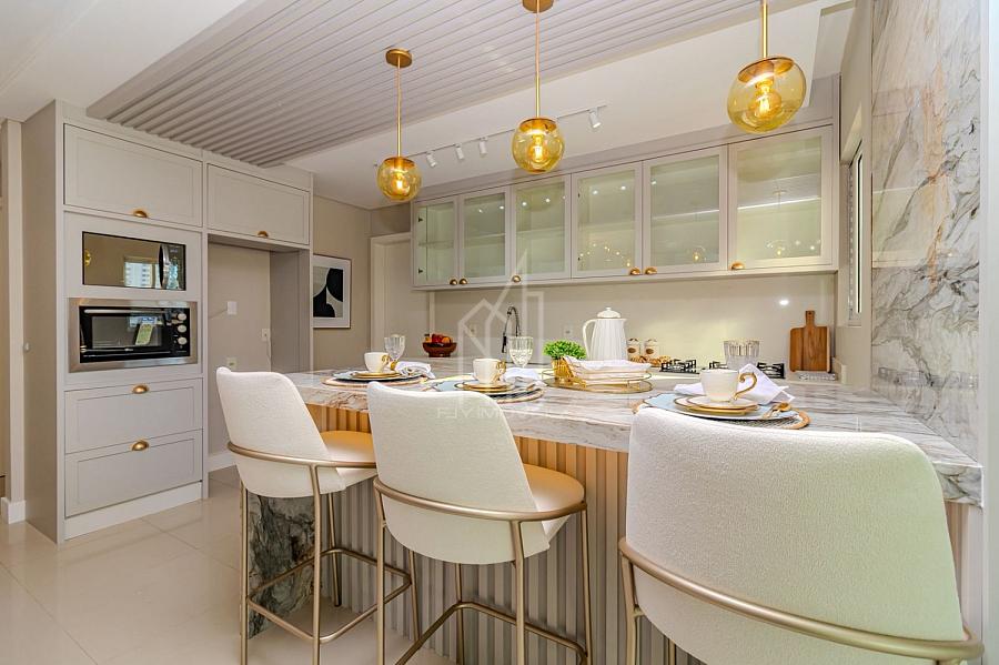 Com 130m² de área privativa, o imóvel está finamente mobiliado e decorado, apresentando um projeto sofisticado e funcional. São 03 suítes, lavabo, living integrado com sala de estar e sala de jantar, além de uma elegante cozinha gourmet com churrasqueira a carvão, área de serviço e 03 vagas de garagem, proporcionando praticidade, espaço e bem-estar em todos os ambientes.