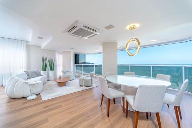 [FRENTE MAR] Apartamento frente mar mobiliado no Edifício Maria Luiza, 382m² privativos, 06 dormitórios sendo 3 suítes e 1 suíte master, closet, lavabo, sala de estar, sala de jantar, cozinha, área de serviço, um apartamento por andar, mobiliado e equipado, vista panorâmica de toda orla da cidade e 2 vagas de garagem.