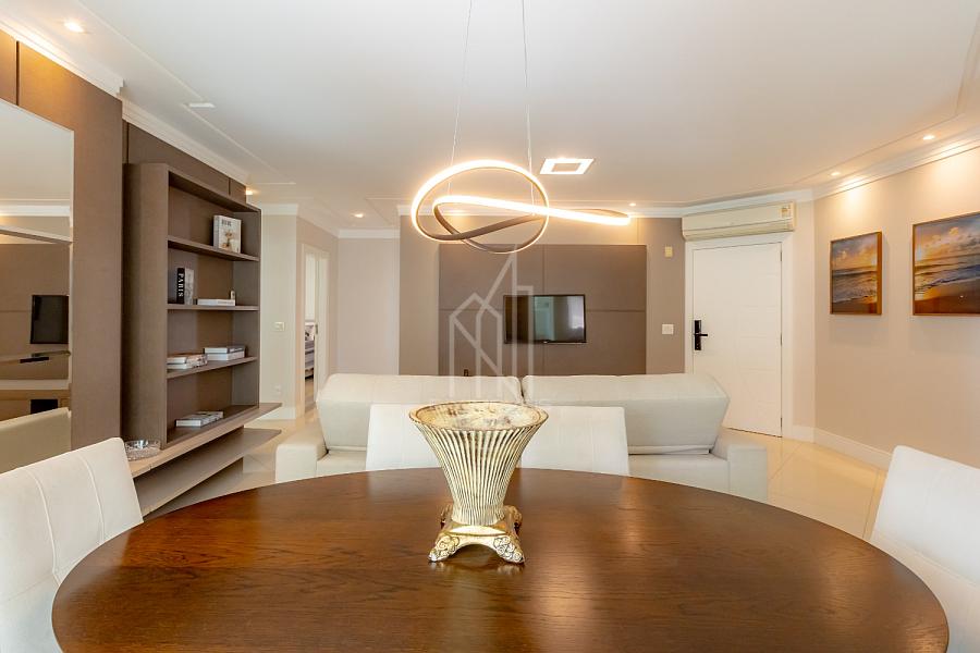 APARTAMENTO DE ALTO PADRÃO NA QUADRA DO MAR, BARRA SUL -  Apartamento no Edifício Monte Bianco em Balneário Camboriú com 131,00m² privativos, mobiliado e decorado, 03 suítes, sala de estar, sala de jantar e cozinha integrados em um amplo living, lavabo social, área de serviço, sacada fechada em vidro, churrasqueira a carvão e linda vista para o mar e 03 vagas de garagem.
