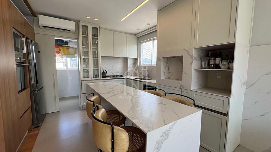 O apartamento conta com 3 suítes (sendo uma delas máster), todas bem planejadas para proporcionar o máximo de conforto. A sala de estar e a sala de jantar são espaçosas, ideais para receber amigos e familiares. A cozinha, equipada e moderna, vem com tudo o que você precisa para facilitar o seu dia a dia, além de contar com um lavabo e uma área de serviço prática.