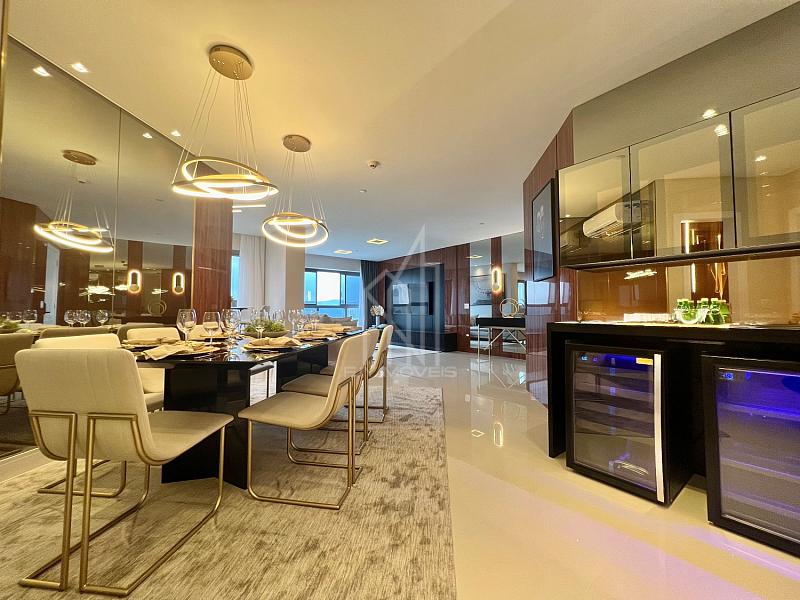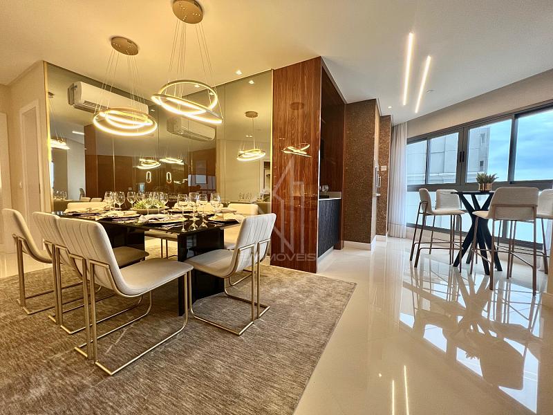 [QUADRA MAR PADRÃO EMBRAED] Apartamento finamente mobiliado e decorado no Edifício New York Apartmentes, 182m² privativos, 04 Suítes sendo uma máster com hidromassagem,amplo living, sacada integrada com churrasqueira a carvão, lavabo, cozinha, área de serviço e 3 vagas de garagem.