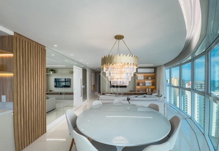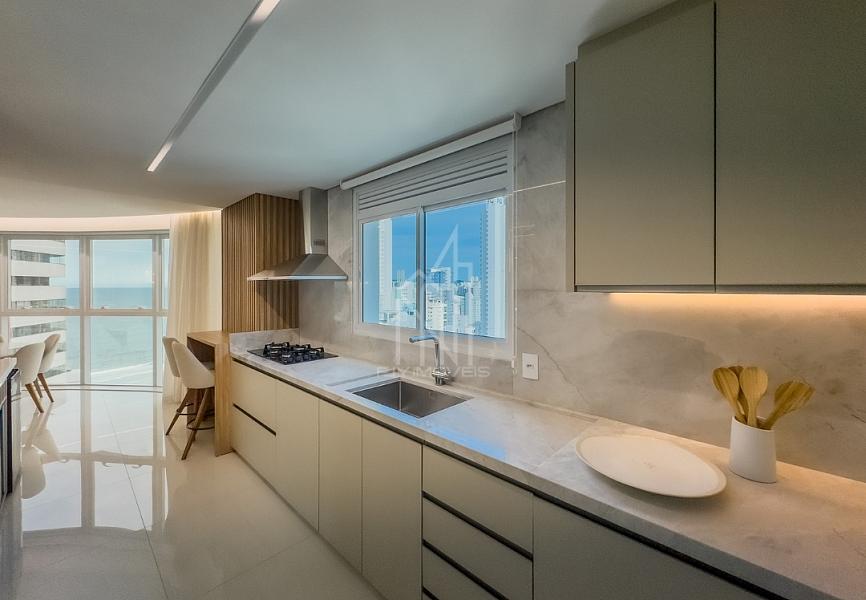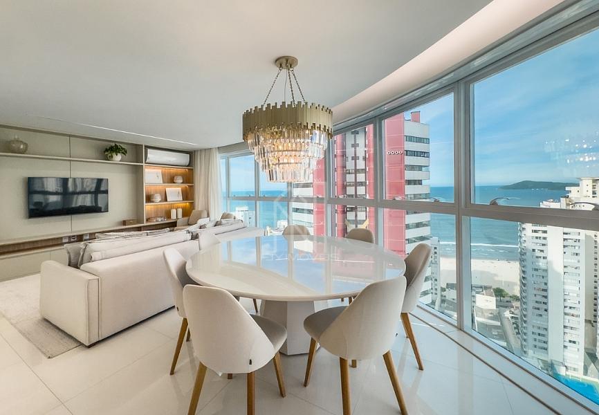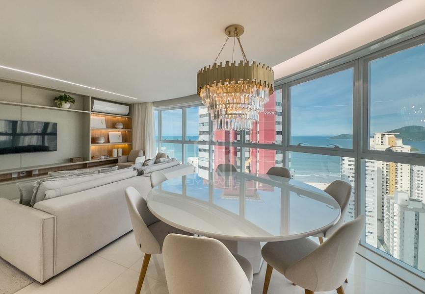 Este belo apartamento possui 132,50m² de área privativa, distribuídos em 04 dormitórios, sendo 02 suites; 02 vagas de garagem e um living integrado com uma belíssima mar vista mar.