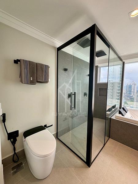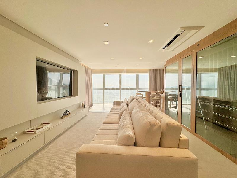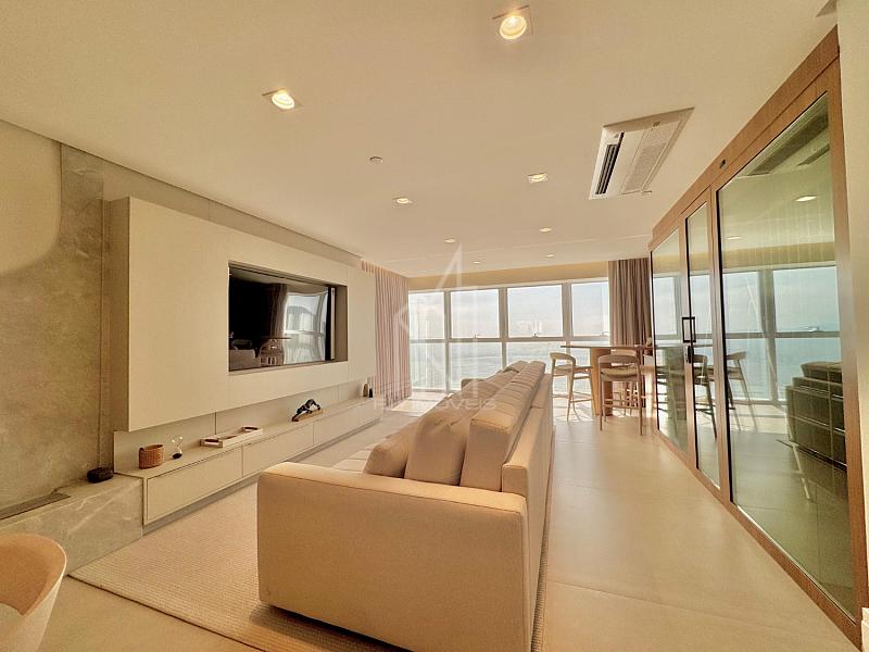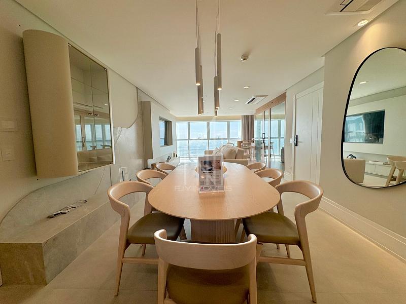 [FRENTE MAR] Apartamento DECORADO no Edifício One Tower, 194m² privativos, 04 suítes sendo uma master com hidromassagem, sala de estar e jantar, espaço gourmet com parrilha, cozinha americana, área de serviço, aspiração central, TV retrátil nas suítes frontais e 03 vagas de garagem.