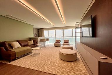 Os apartamentos possuem 194m² privativos, divididos em 4 suítes (1 master, com hidromassagem), com uma variação de plantas que incluem living para dois ambientes (todo em pele de vidro com espaço grill), cozinha integrada e home theater, além de vista para o mar.