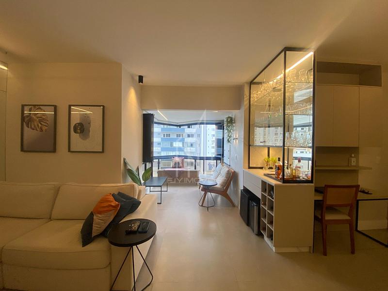 [FRENTE MAR] Apartamento mobiliado no Edifício Portal do Atlântico em Balneário Camboriú, com 83m² privativos,  sendo 2 suítes, cozinha planejada, área de serviço, sacada integrada com churrasqueira a carvão, 1 vaga de garagem privativa e vista para o mar.