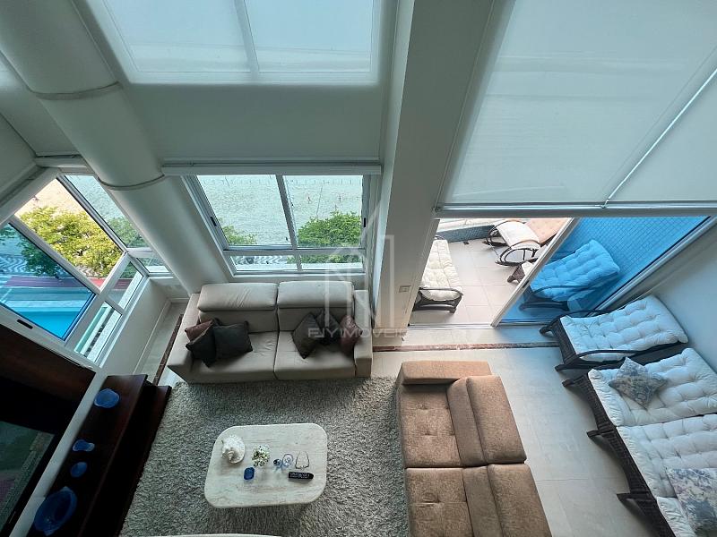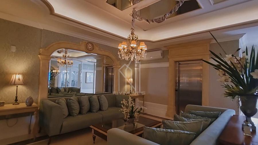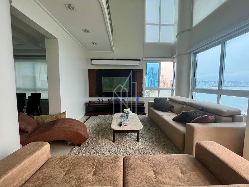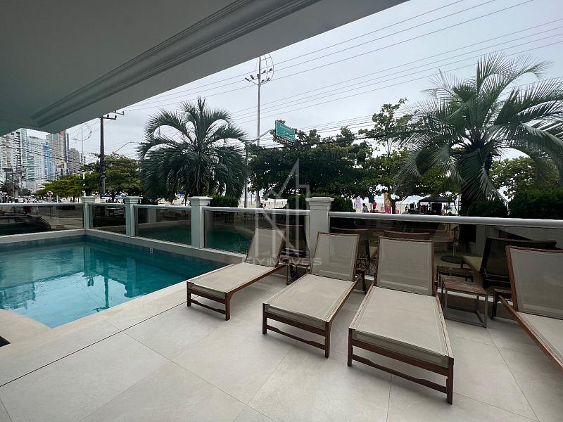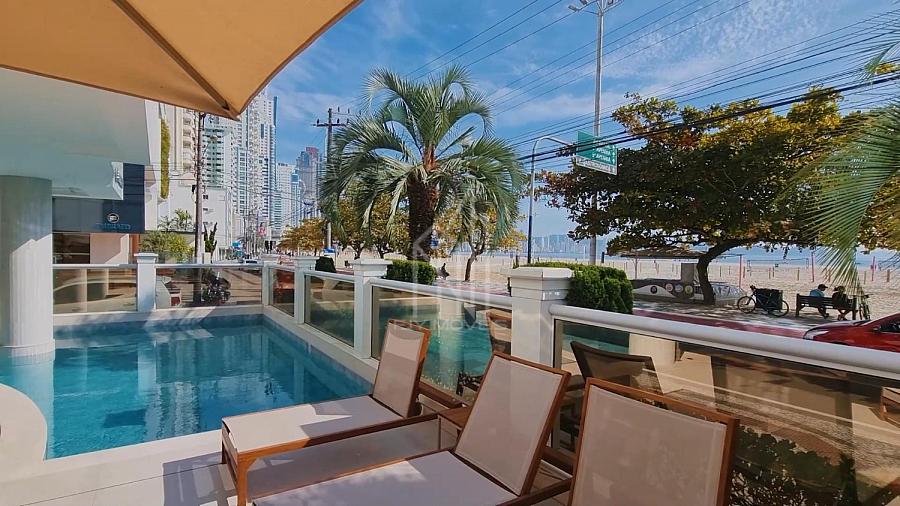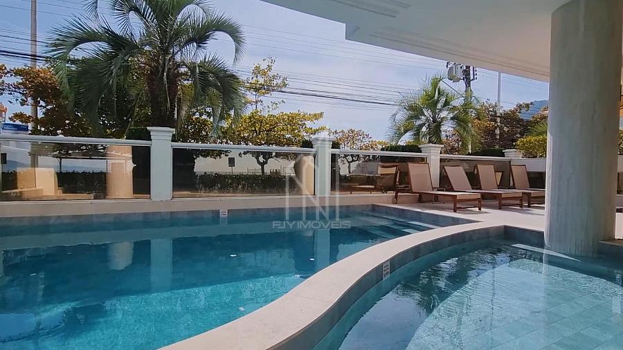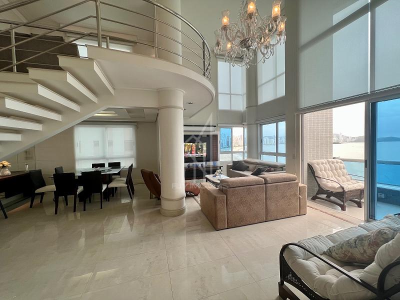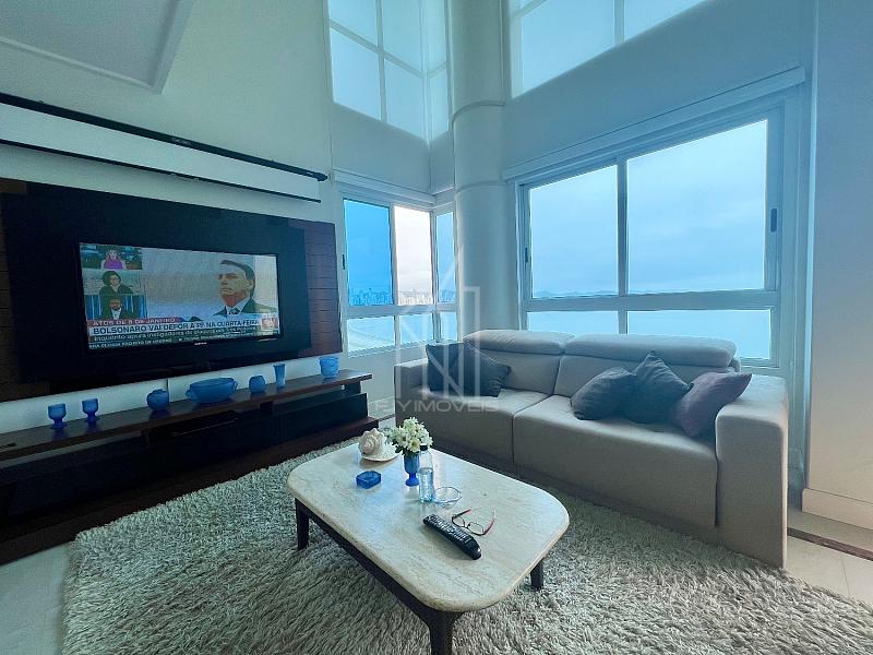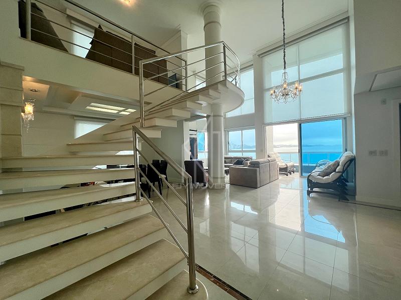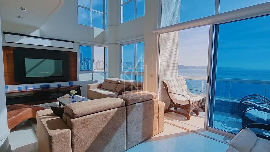 Apartamento FRENTE MAR no Edifício PORTO VITA, 250m² privativos, 03 suítes sendo uma master, pé direito duplo, living com pé direito duplo, mezanino, sacada aberta e vista mar e vista panorâmica de toda praia, dependência com banheiro, lavabo, cozinha, área de serviço e 03 vagas de garagem.