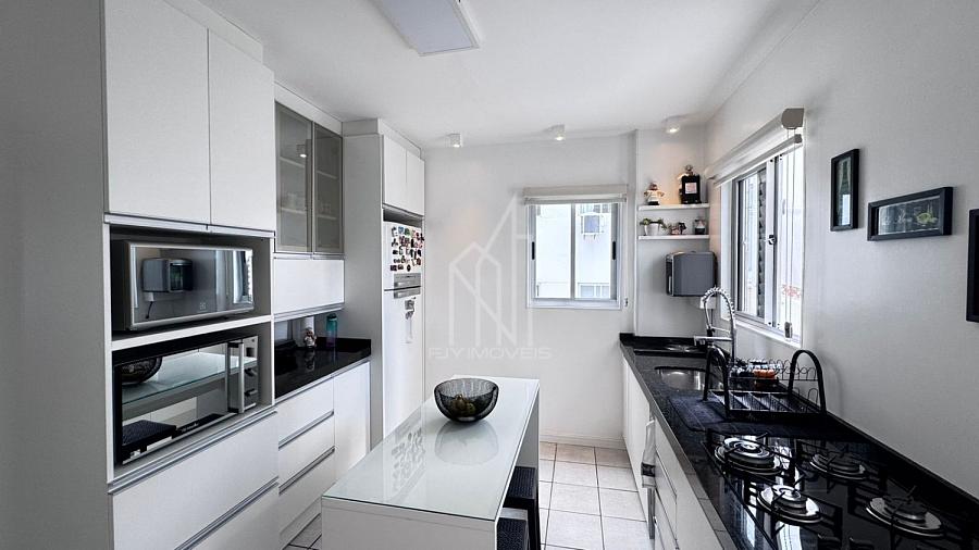A cozinha planejada é funcional e moderna, conta com área de serviço de apoio e ainda um terraço privativo.