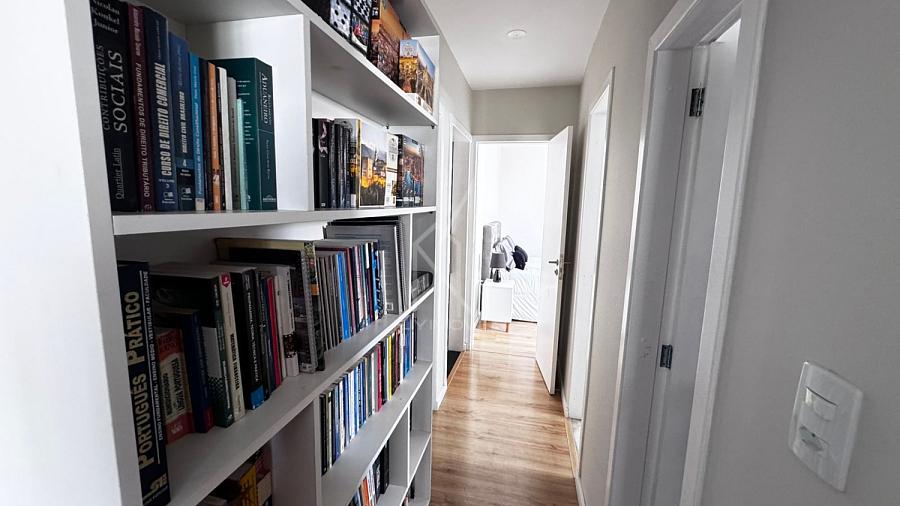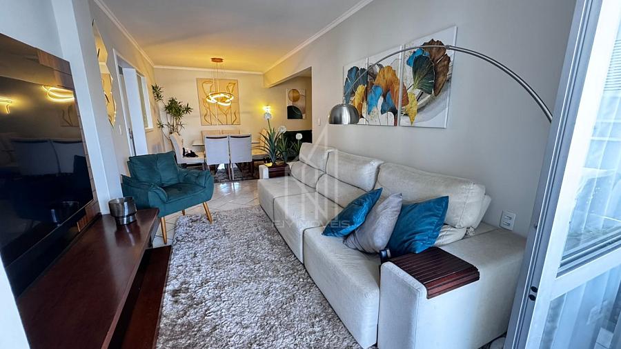O living amplo e integrado proporciona praticidade e comodidade, distribuído em 3 ambientes – sala de estar, sala de TV e sala de jantar – com acesso à sacada espaçosa com churrasqueira a carvão, perfeita para receber amigos e familiares.