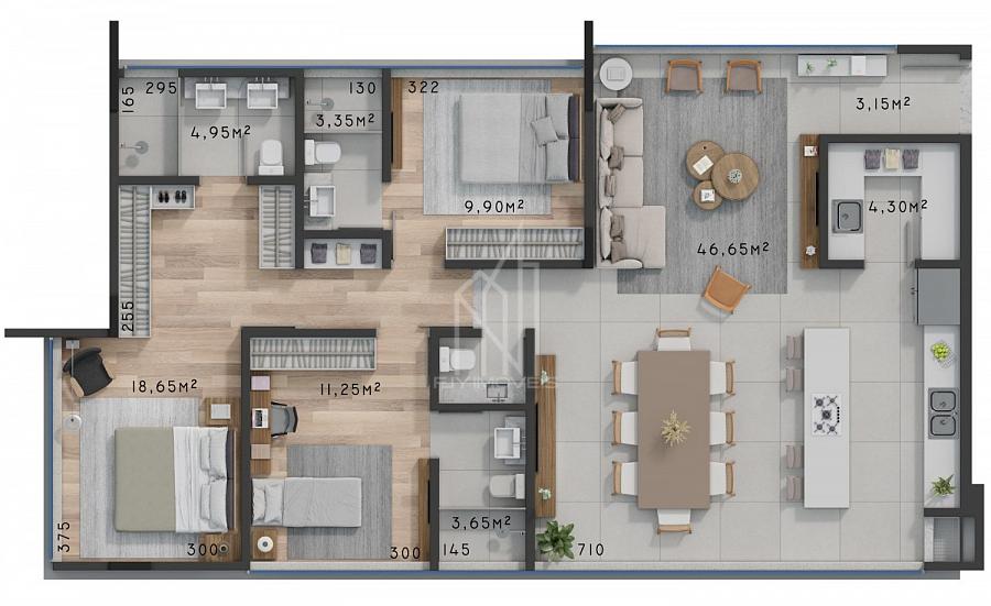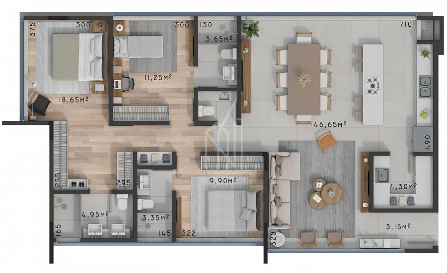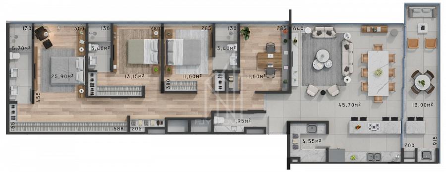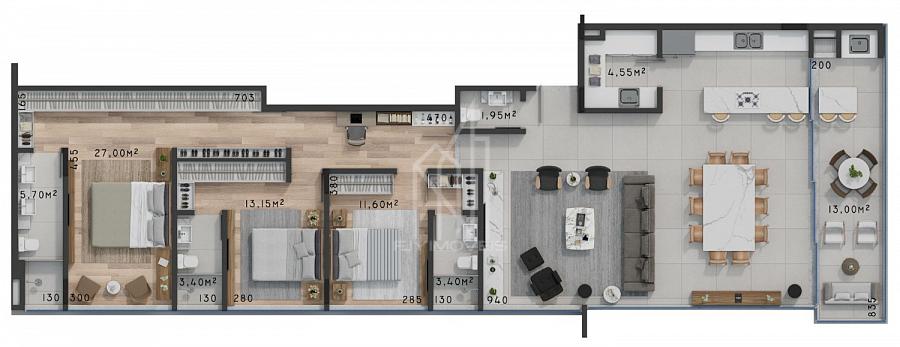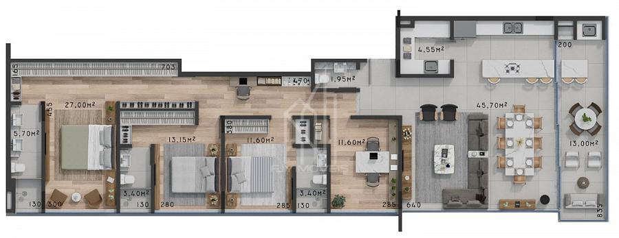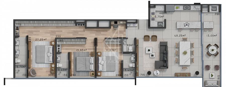 3 dormitórios (3 suítes)