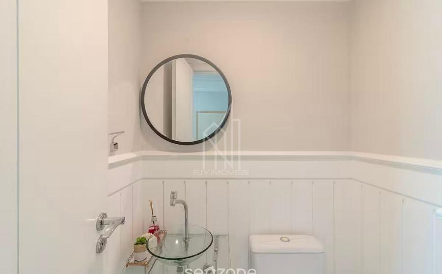 O apartamento conta com churrasqueira a carvão, lavabo, cozinha integrada e área de serviço, entregando funcionalidade e conforto em um projeto moderno e bem distribuído. Entre as suítes, uma delas possui banheira, ideal para quem busca ainda mais conforto e sofisticação.