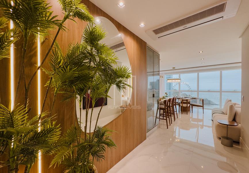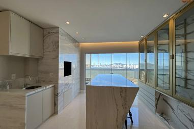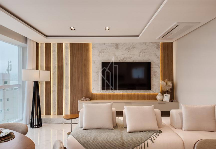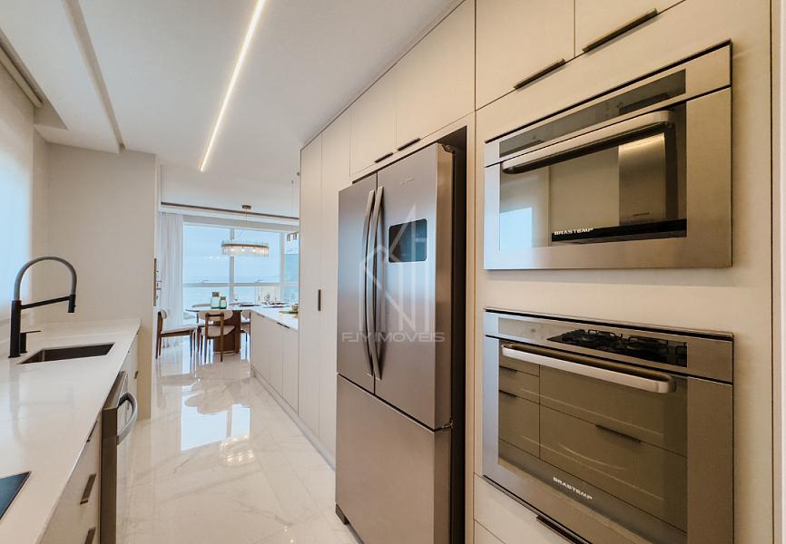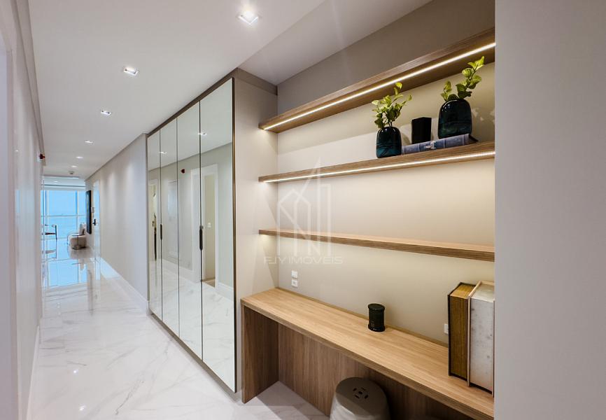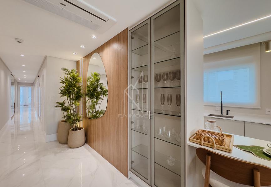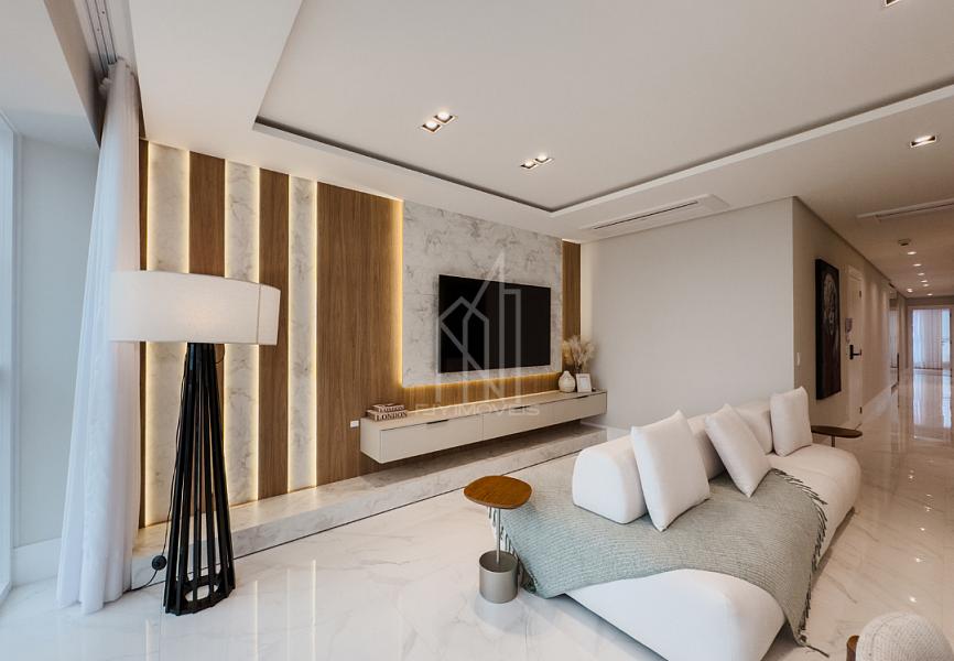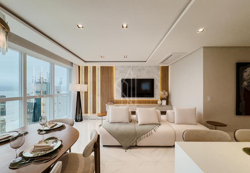 [DECORADO] Apartamento no edifício Skyline tower da construtora FG em Balneário Camboriú, apartamento amplo com 150,06m² de área privativa sendo 04 suítes, banheiro social, living amplo com dois ambientes, sala de estar e sala de jantar, cozinha gourmet integrada, fachada em pele de vidro com vista para o mar e 03 vagas de garagem.