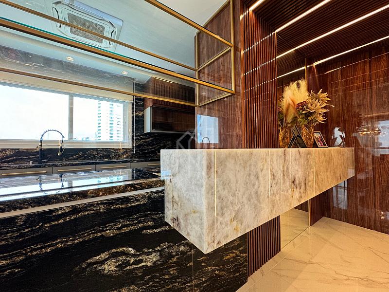 [ALTO PADRÃO] Apartamento no Edifício Skyline Tower, 150 m² de área privativa, 04 suítes, finamente mobiliado e decorado, lavabo, living, vista mar, 03 garagens privativas.