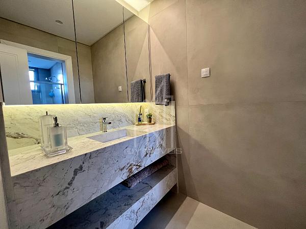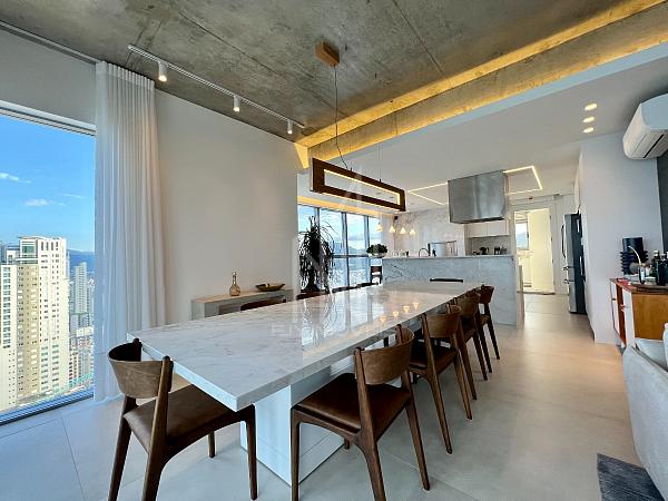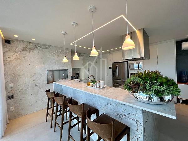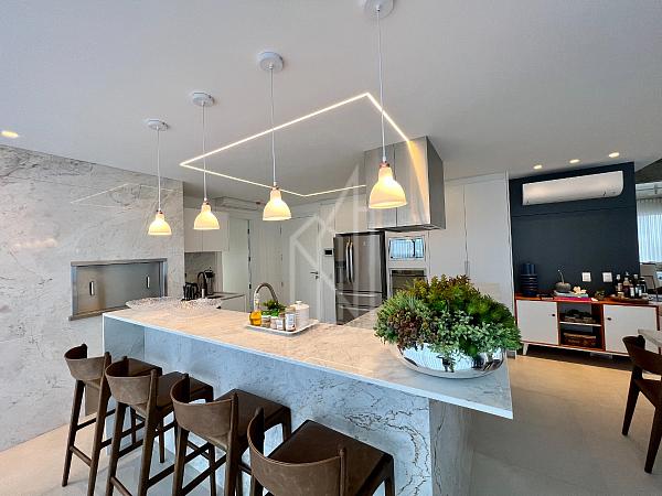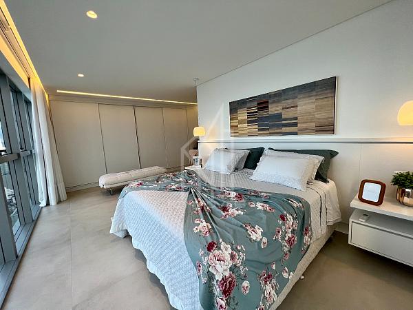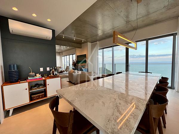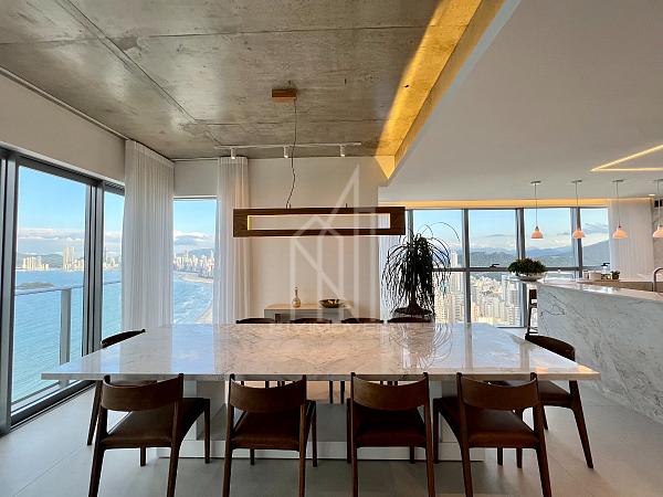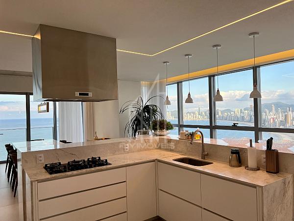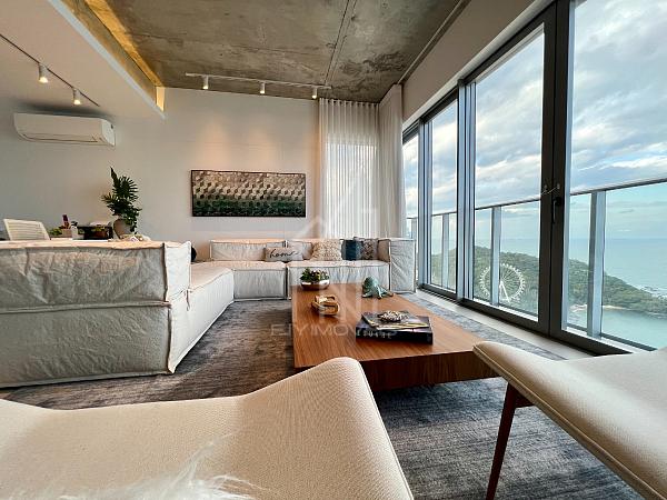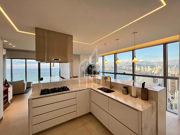São 305m² privativos sendo um apartamento LAJE INTEIRA com 05 suítes, sala de estar em 03 ambientes, churrasqueira a carvão, cozinha, área de serviço, sauna, home office e 04 vagas de garagem, cuidadosamente pensado para harmonizar os espaços com abundância de luz natural e a deslumbrante vista da orla e da mais nova atração da roda gigante FG BIG WHELL.