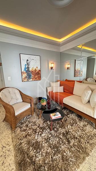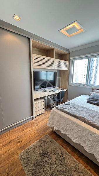 Apartamento com living amplo que integra sala de tv e jantar, área gourmet com churrasqueira á carvão, cozinha planejada e área de serviço separada.