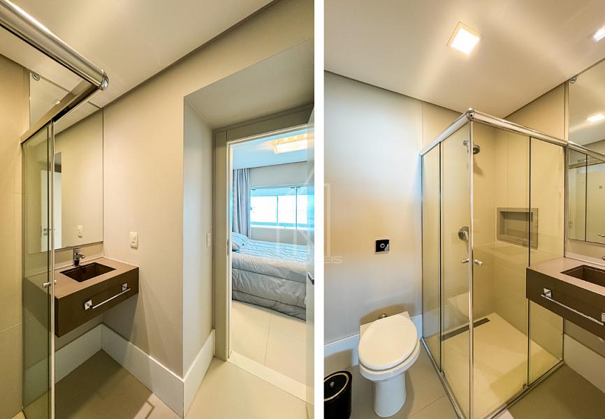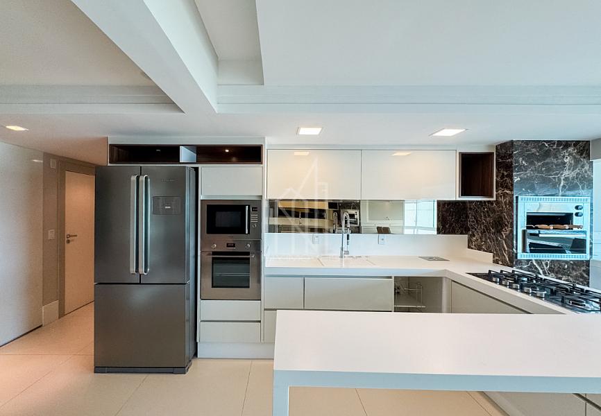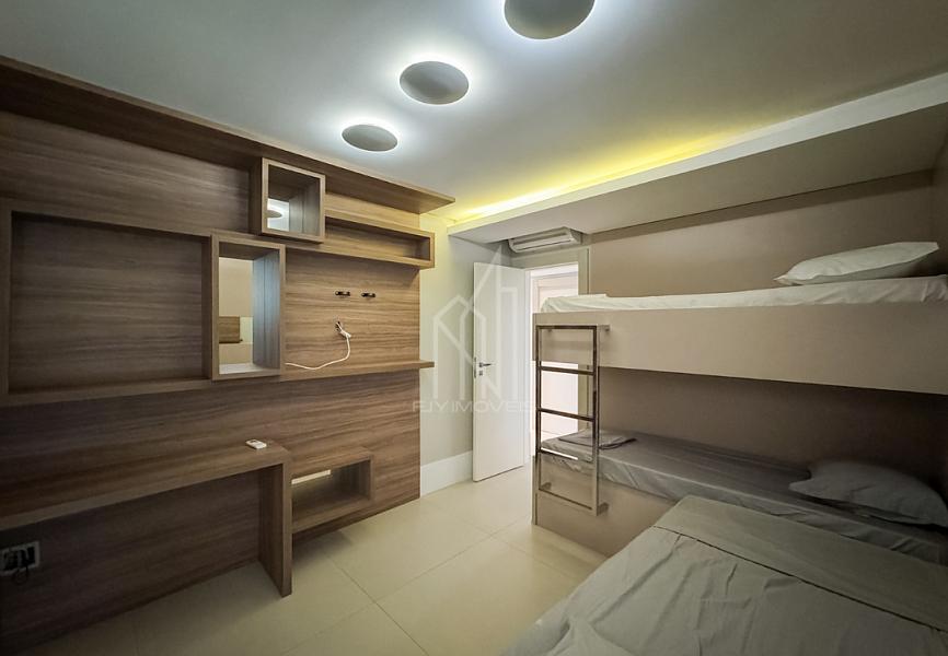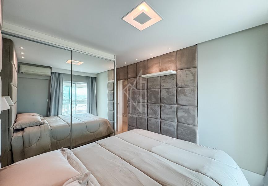 O apartamento mobiliado possuí 04 suítes + dependencia de empregada, 153m² privativos, sala de TV, sala de jantar, cozinha, ampla sacada com vista total da orla, área de serviço, sacada técnica, banheiro de serviço, entrada de serviço e 02 vagas de garagem individuais.