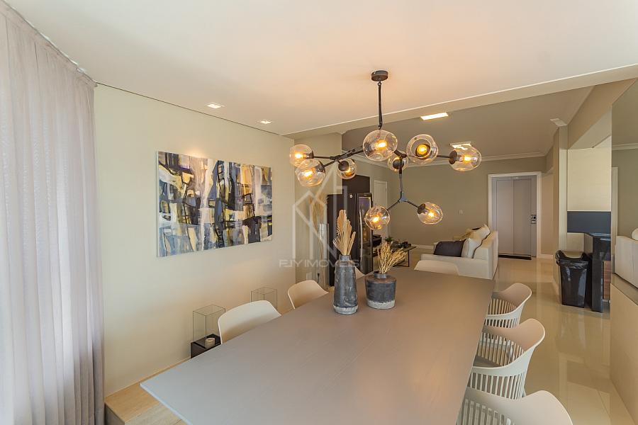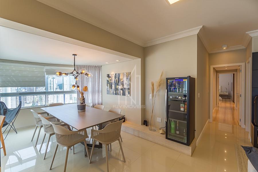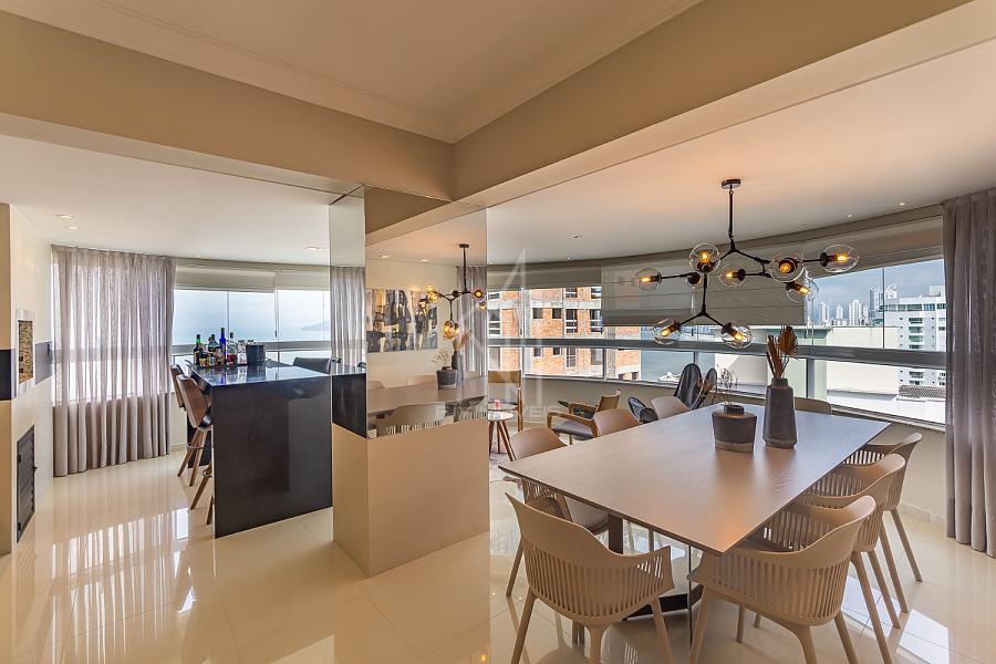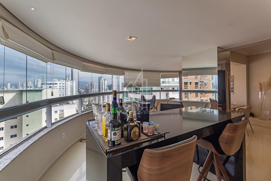 Apartamento PRONTO PARA MORAR no Edifício Torre de Málaga em Balneário Camboriú, 142,68 m² privativos, 03 suítes sendo uma master, sacada integrada com churrasqueira a elétrica, sala de estar e jantar, vista mar, cozinha, área de serviço, mobiliado e decorado e 03 vagas de garagem.