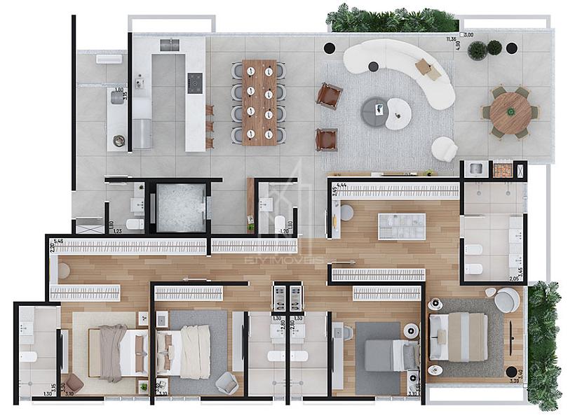 a partir de 209m² privativos, 4 suítes e 3 vagas de garagem. Assinado por Marcos Bertoldi e com mobiliário de Oscar