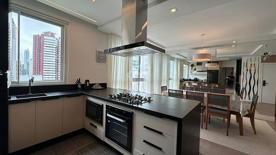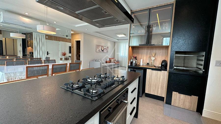 [MOBILIADO E DECORADO] Apartamento no Edifício Villa Alba, está finamente mobiliado, equipado e decorado e conta com 04 suítes, 142,65 m² de área privativa, cozinha gourmet com churrasqueira a carvão, área de serviço, lavabo, ambientes climatizados, living integrado e 03 vagas de garagem privativa.