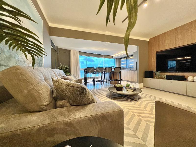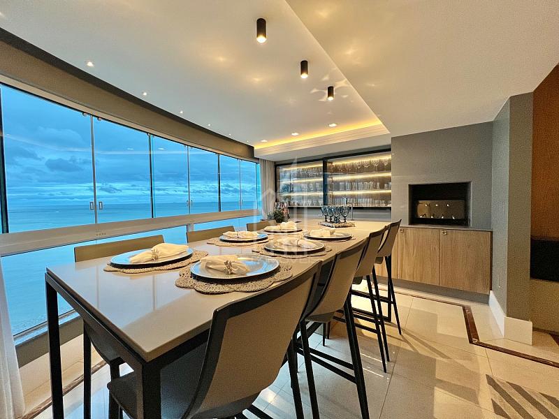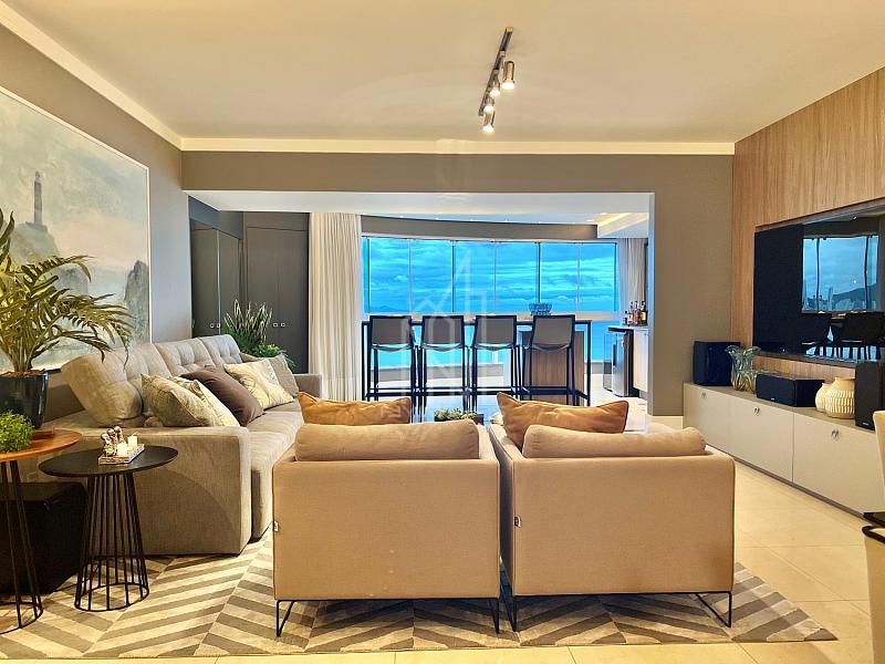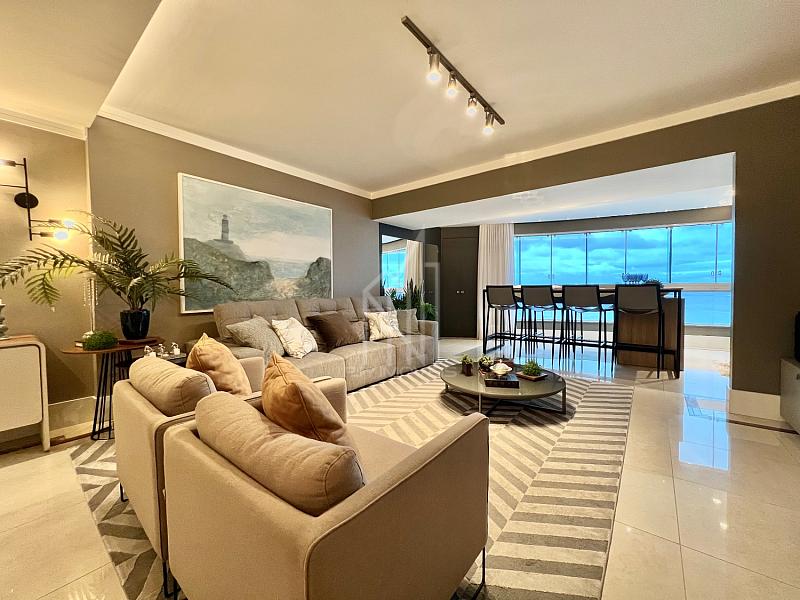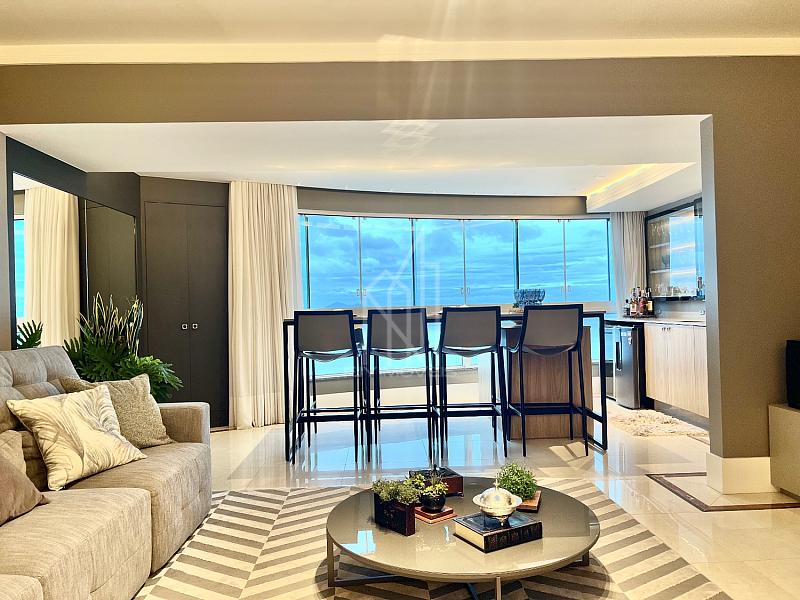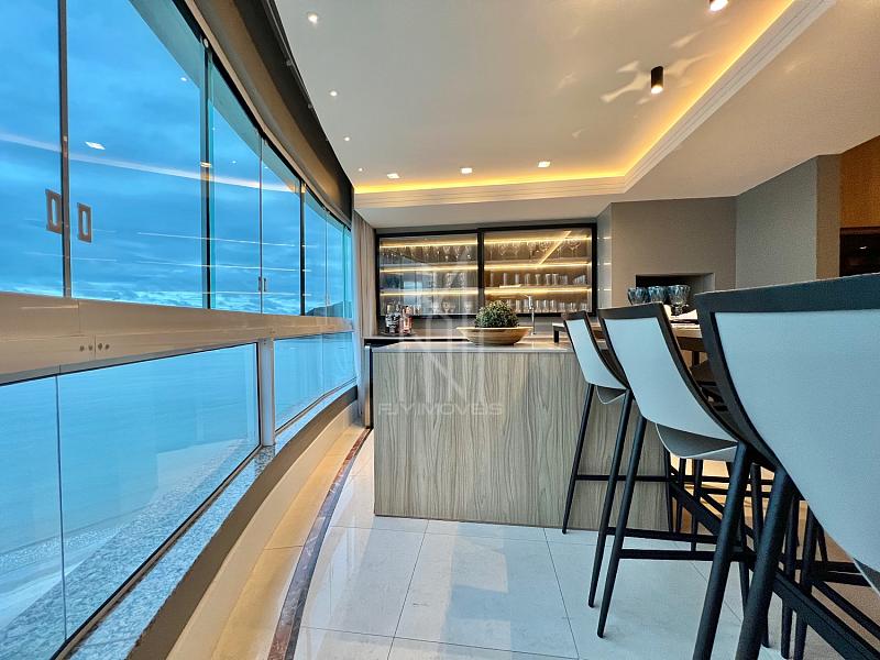 Apartamento Frente mar PRONTO PARA MORAR no Edifício Villa Cora da EMBRAED, 166m² privativos, 03 suítes sendo uma master com hidromassagem, finamente mobiliado e decorado, espaço gourmet com churrasqueira a carvão, vista mar de toda orla de Balneário Camboriú, living em dois ambientes, cozinha, área de serviço, dependência de empregada e 02 vagas de garagem.