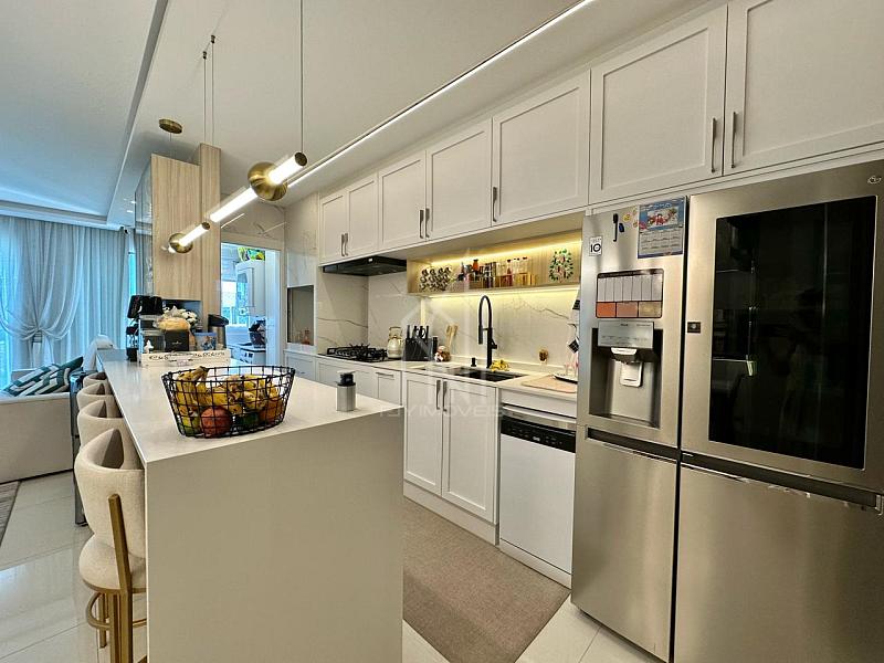 [DECORADO] Apartamento finamente mobiliado e decorado no Edifício Villagio Del mare, 110 m² privativos, sala de estar e jantar, churrasqueira a gás, cozinha integrada, área de serviço, muito bem arejado e ensolarado e 02 vagas de garagem privativas.