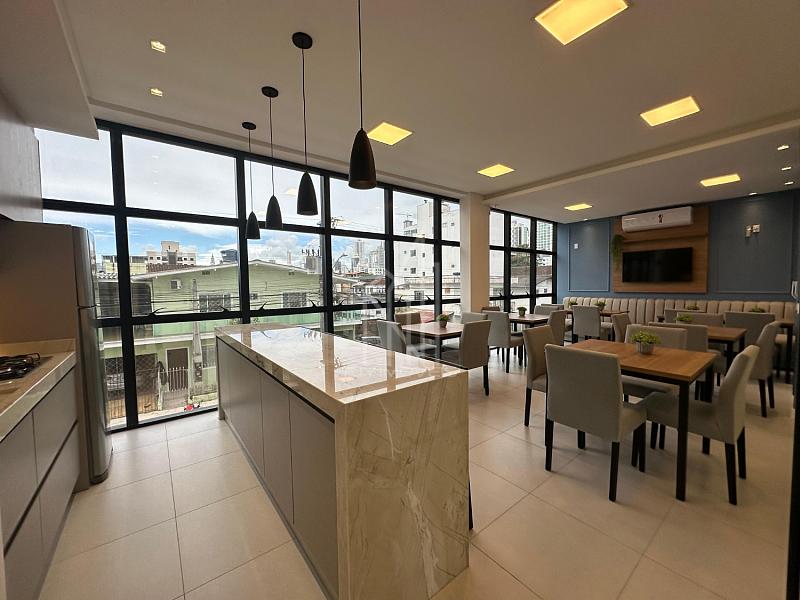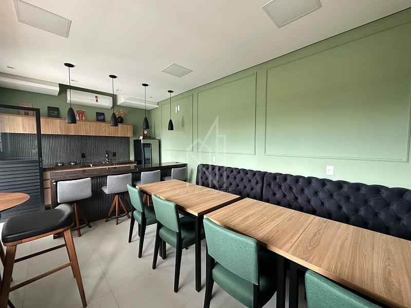 O empreendimento possui área de lazer com salão de festas, quiosque gourmet, espaço fitness, pub Inglês e piscina. O prédio possui hall de entrada e 1 elevador.