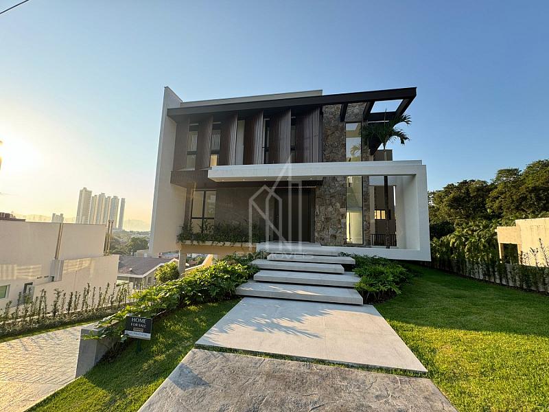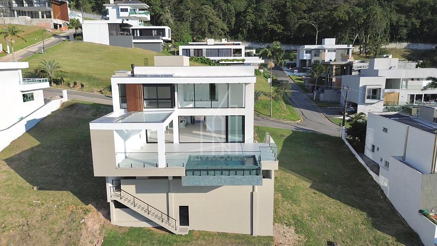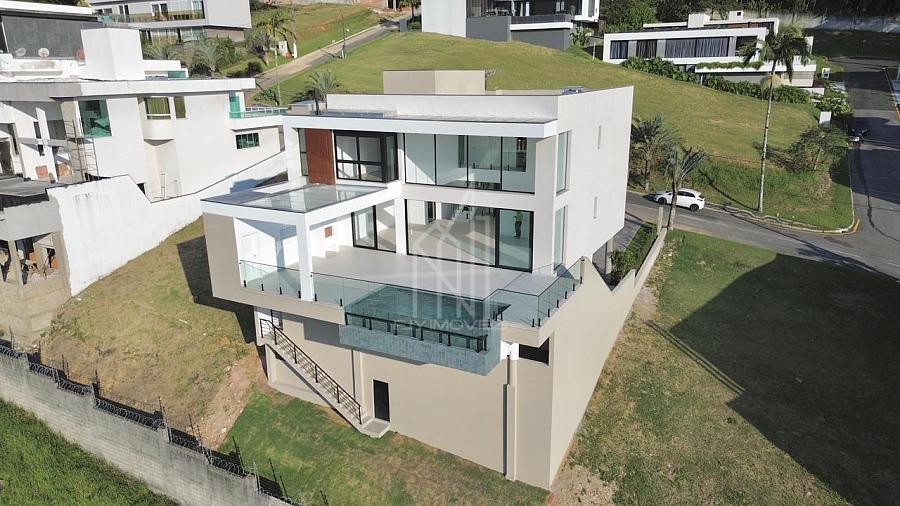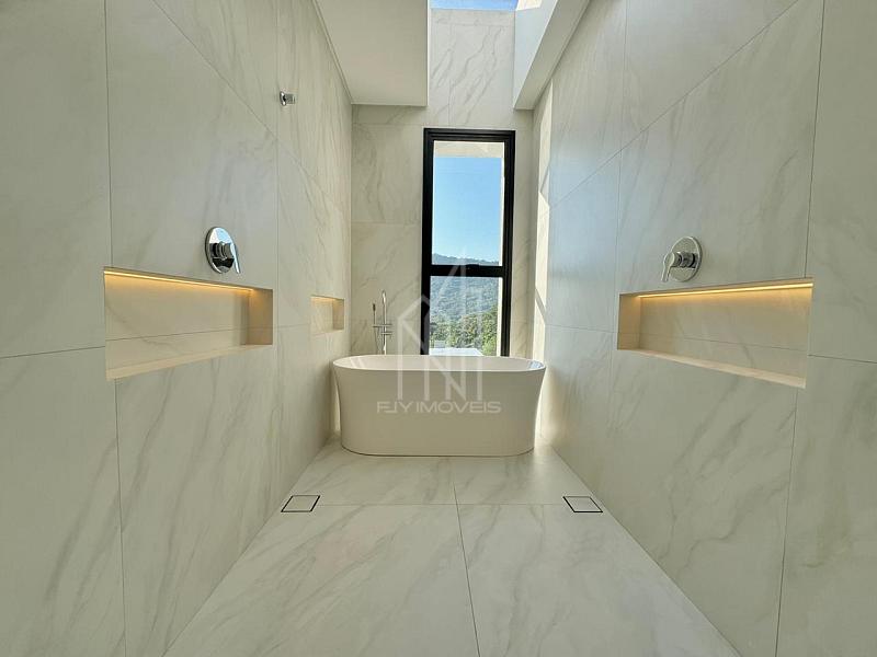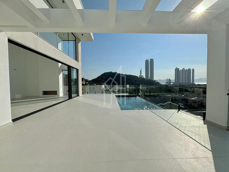 [ALTO PADRÃO] Casa com vista mar no condomínio Bella Vista Residence Club, 560m² privativos, 04 suítes sendo uma master e uma suíte com closet e banheira,living com pé direito duplo, sala de estar com lareira, cozinha gourmet integrada, piscina privativa com borda infinita e vista mar, espaço gourmet com churrasqueira a carvão, 06 vagas de garagem privativa.