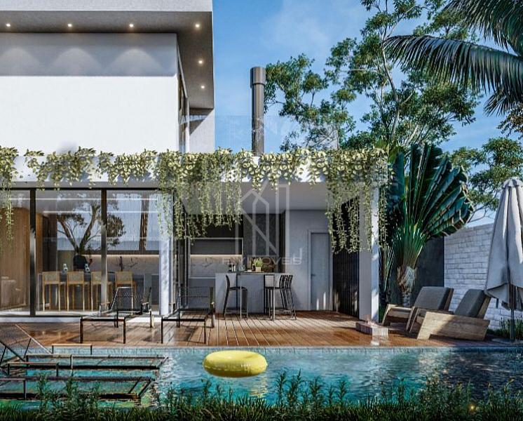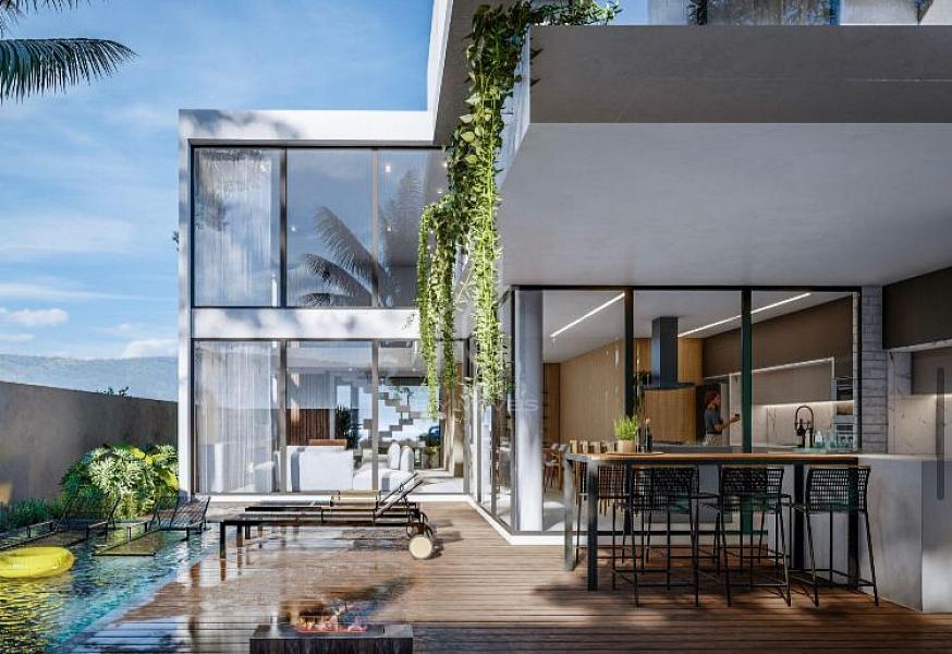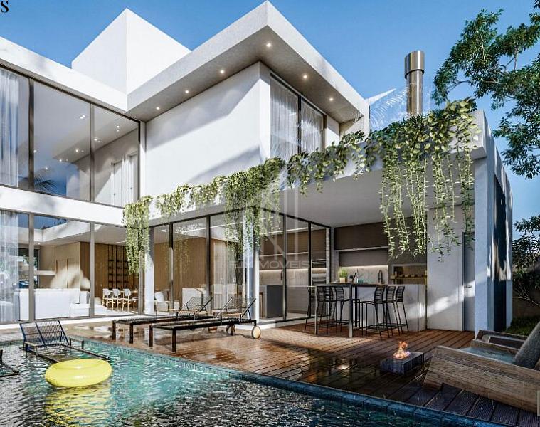 ALTO PADRÃO Casa Happiness no Condomínio Caledônia Private Village Camboriú, terreno com 386,43m² e área construída com 370m², 03 suítes (piso superior), sendo 1 master com closet, 01 suite no piso térreo, Sala íntima piso superior, Sala de estar com pé direito duplo com ponto de lareira a gás, Sala jantar, Cozinha, lavanderia e despensa, espaço gourmet com churrasqueira a carvão, infra para aquecimento solar e energia solar, piscina com prainha, tratamento a sal, garagem para até 06 carros com tomada para carro elétrico sendo 03 cobertas e 03 descobertas,  esquadrias com veneziana motorizada e tela mosquiteiro em todos ambientes.