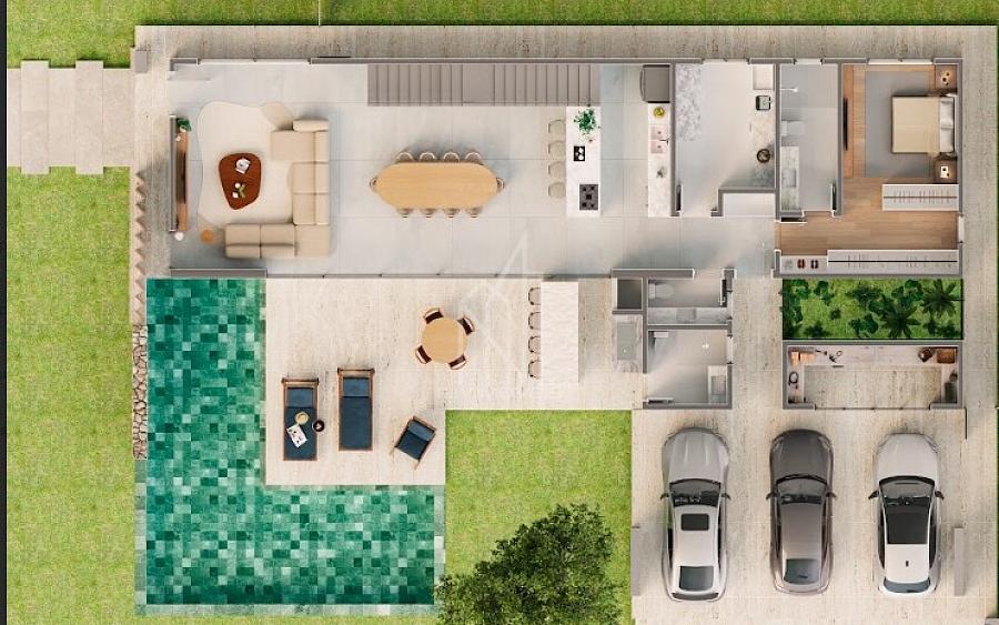 O imóvel se destaca pelo acabamento premium, com aberturas em PVC, piso vinílico na área íntima, porcelanato 100x100 nas áreas sociais, portas laqueadas com fechaduras em inox, revestimentos em pedra natural e brises em madeira nobre. Conta também com isolamento acústico, porta principal em madeira maciça e um jardim com grama e podocarpos, garantindo maior privacidade e sofisticação ao paisagismo.